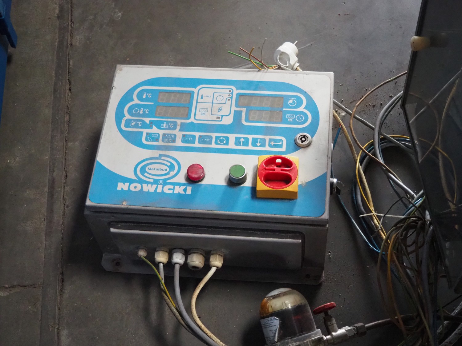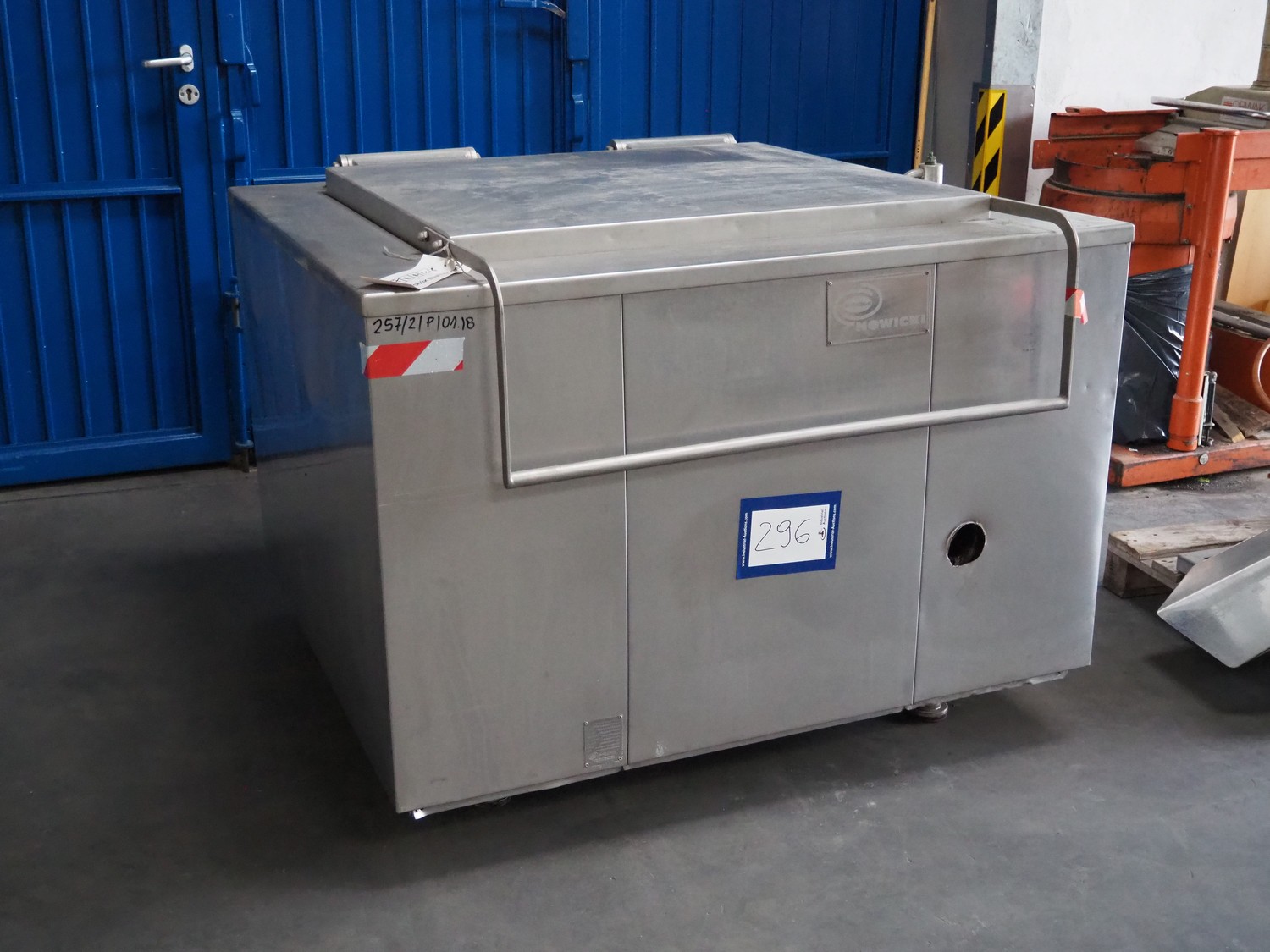 Nowicki cooking vessel, type: KWO-500, fabrication number: 40202042, year of construction: 2002, 220 V, 11-33 kW, weight: 670 kg, capacity: 500 liter, dimensions: 1400 mm x 1400 mm x 1100 mm.