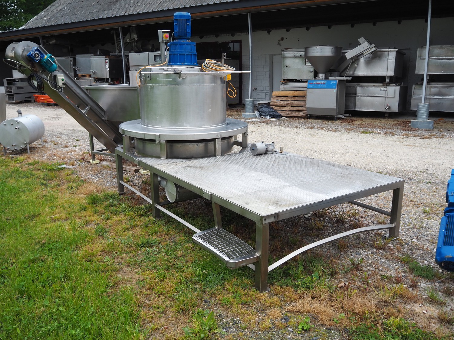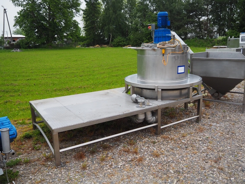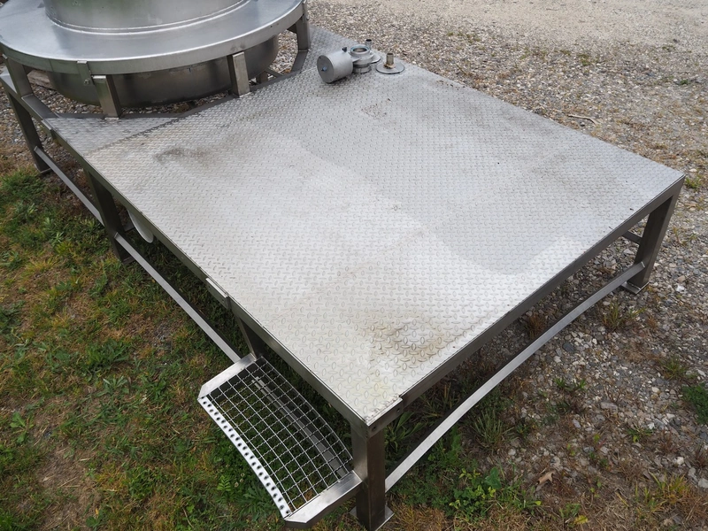 S/s cooking vessel with agitator on s/s platform, inside dimensions: Ø 1000 mm x 900 mm, total dimensions: 3200 mm x 1600 mm x 2150 mm.