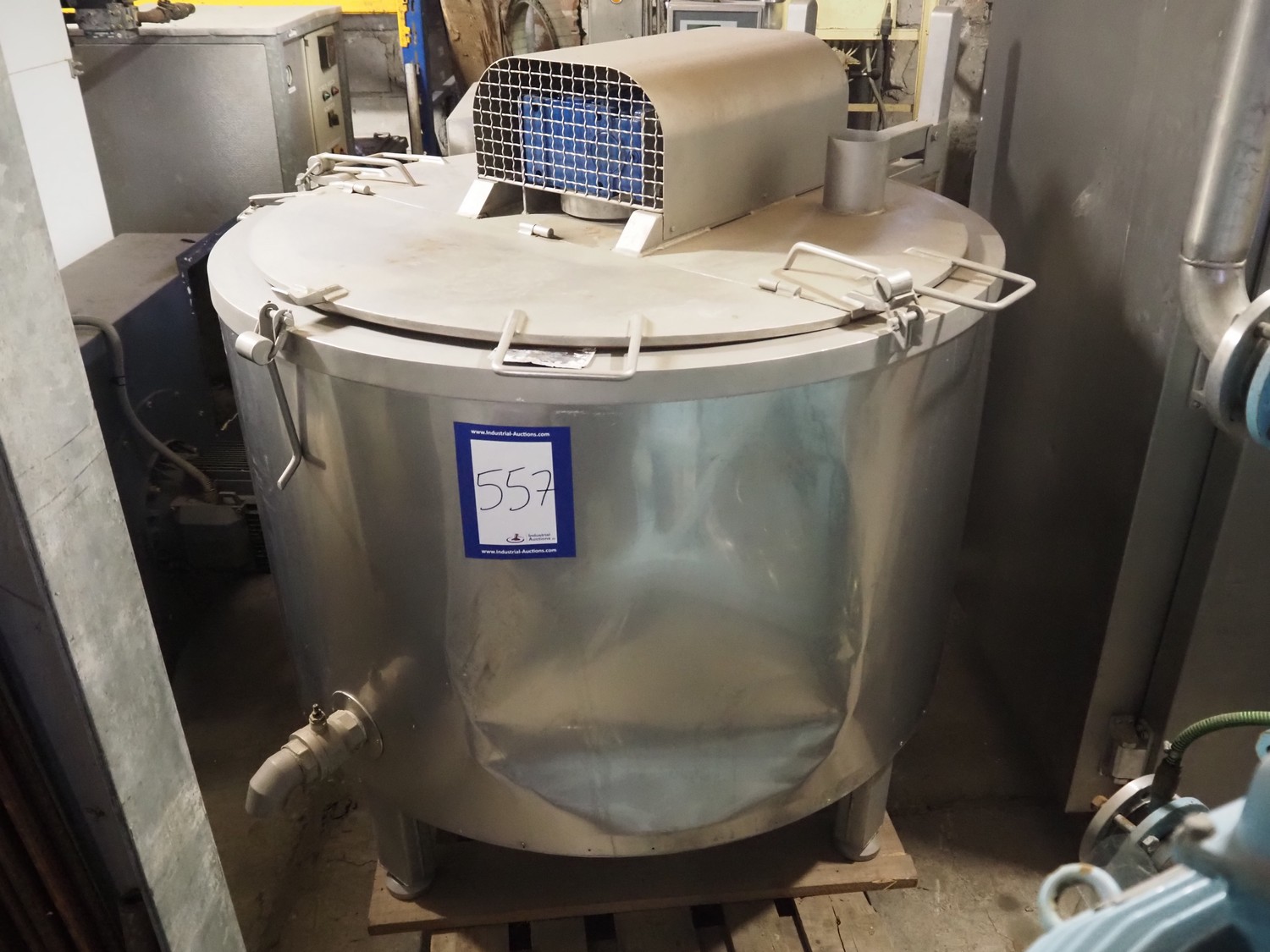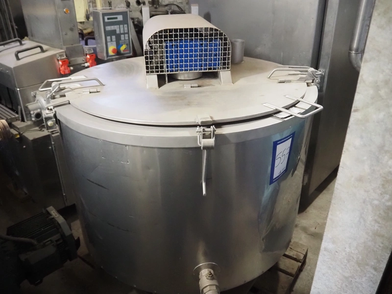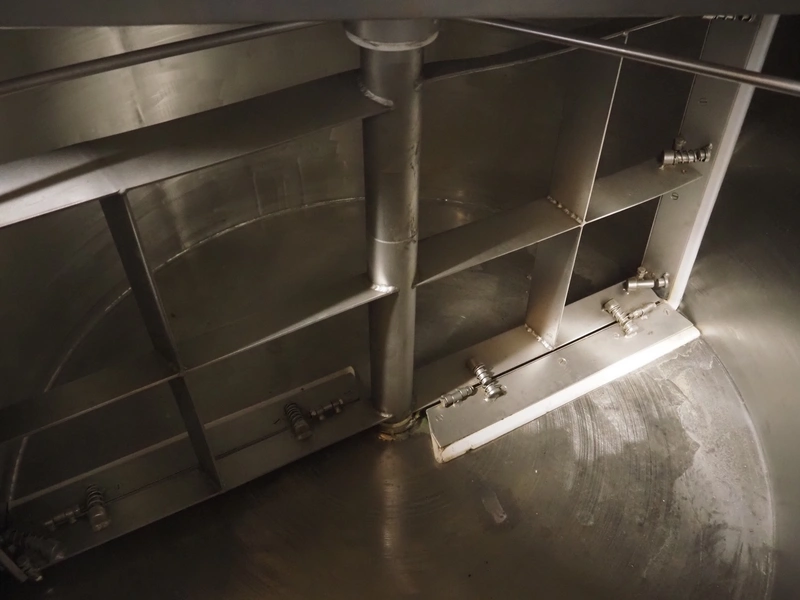 Karpowicz double jacketed cooking vessel with agitator, type: KKM-600, dimensions: 1800 mm x 1400 mm x 1400 mm.