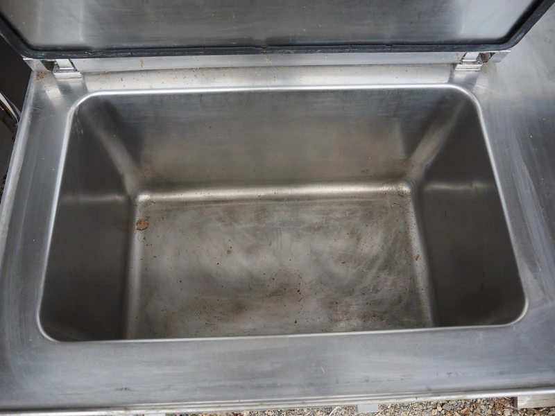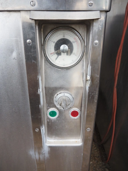 Cooking vessel, inside dimensions: 1000 mm x 600 mm x 560 mm, total dimensions: 1500 mm x 1240 mm x 1150 mm.