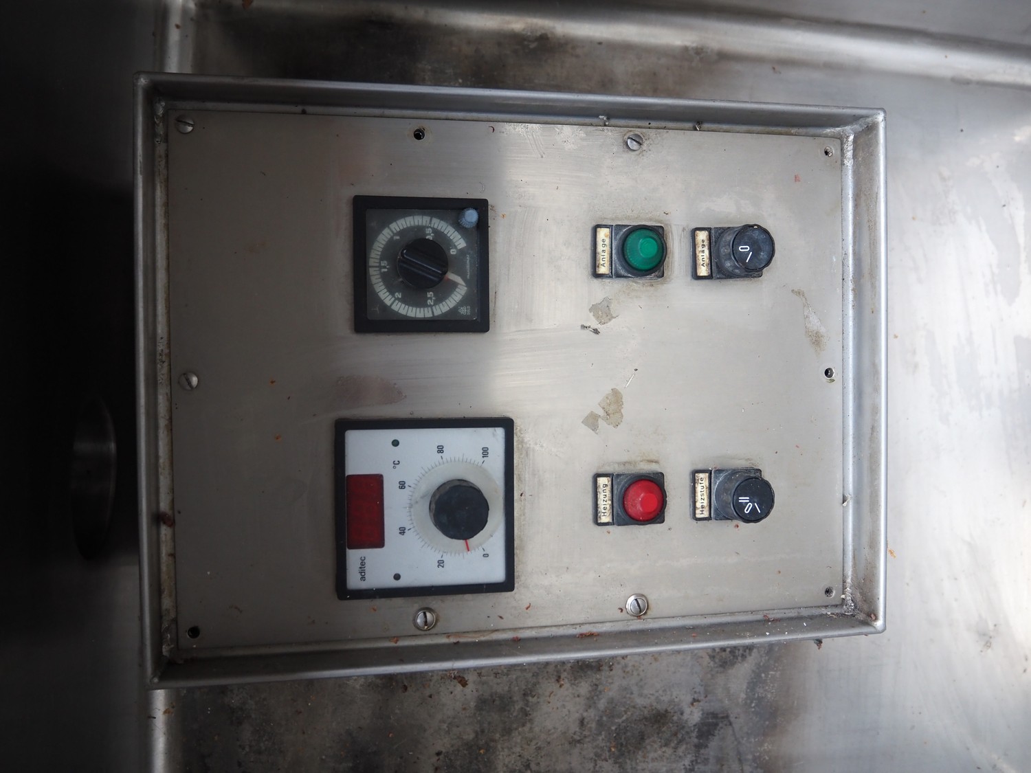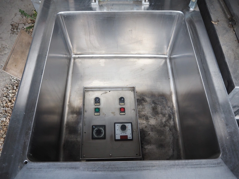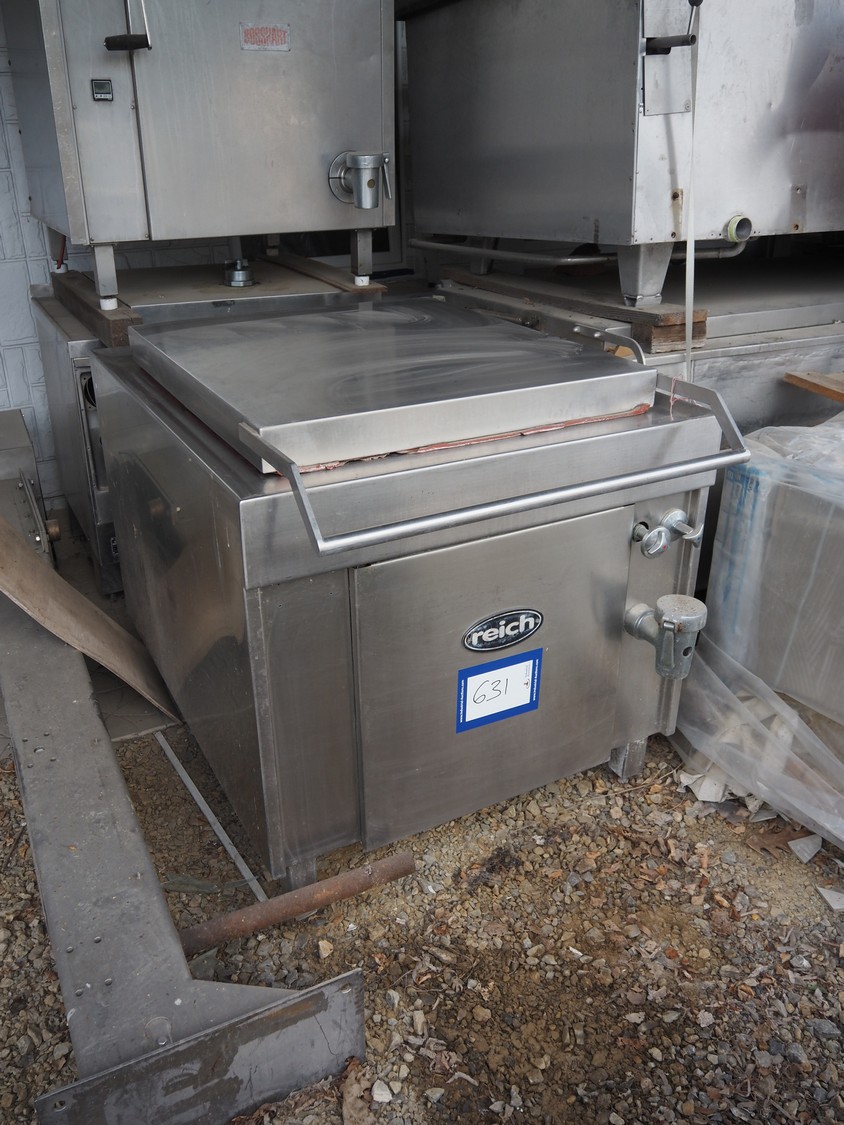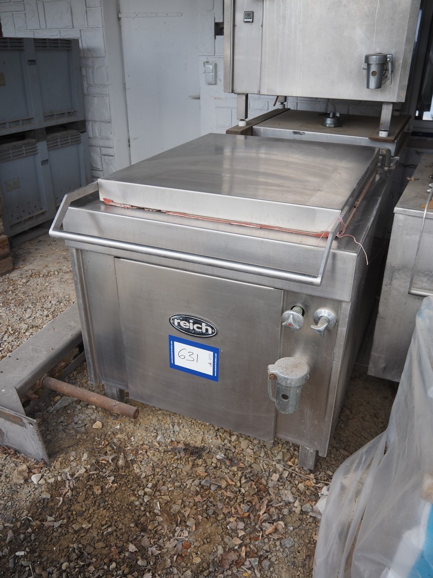 Reich cooking vessel, inside dimensions: 800 mm x 900 mm x 450 mm, total dimensions: 1000 mm x 1380 mm x 1000 mm. Including switch cabinet.
