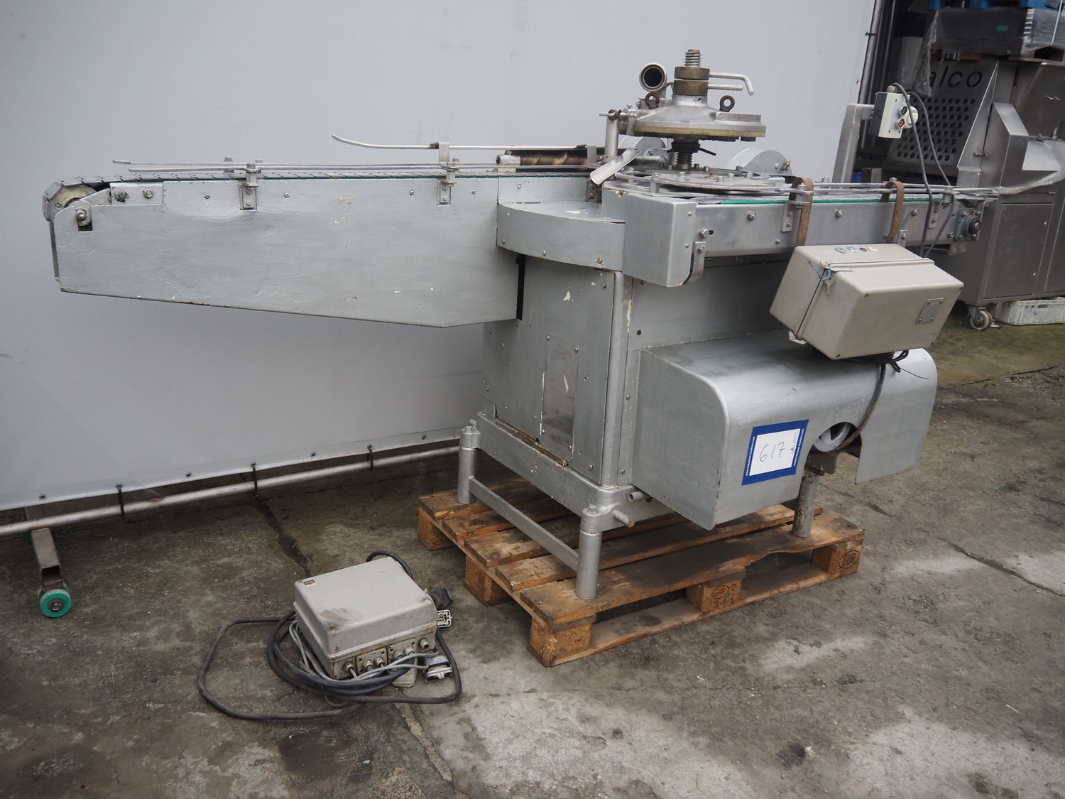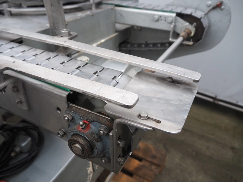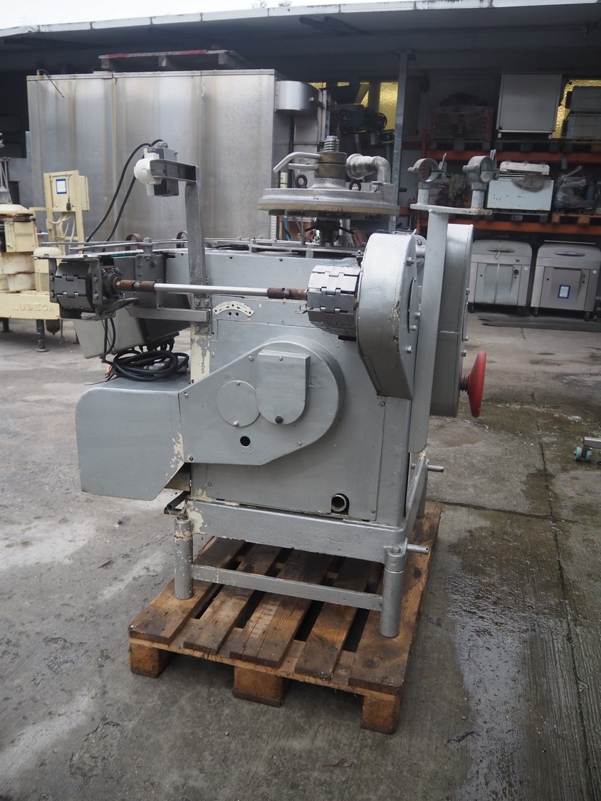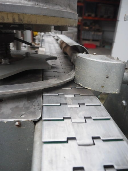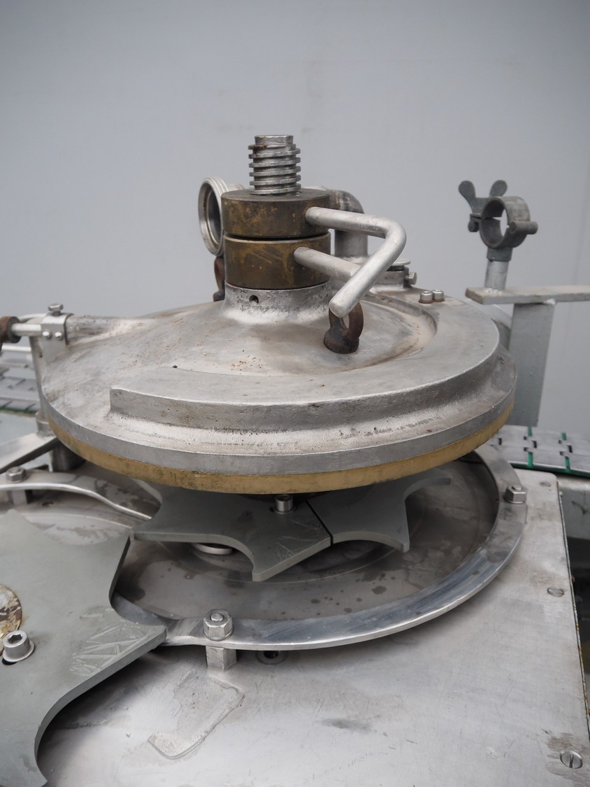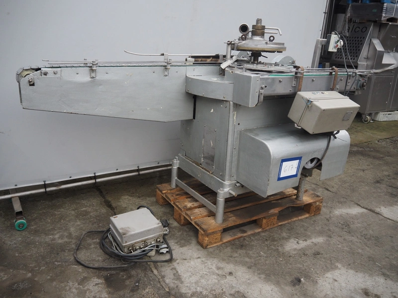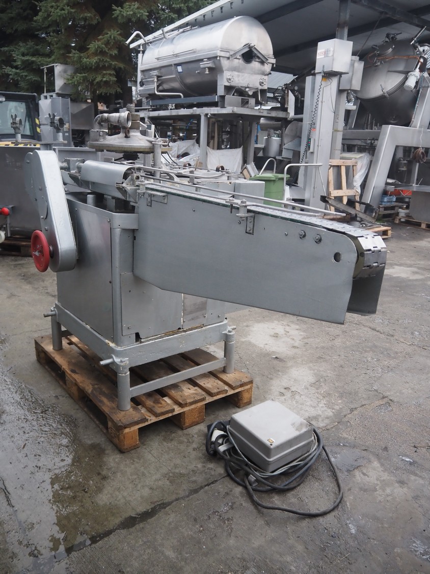 IMC can filling machine, diameter cans: 73 mm, s/s belt, belt width: (2x) 82 mm, total dimensions: 2300 mm x 1220 mm x 1410 mm.