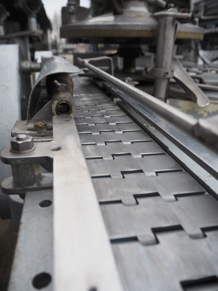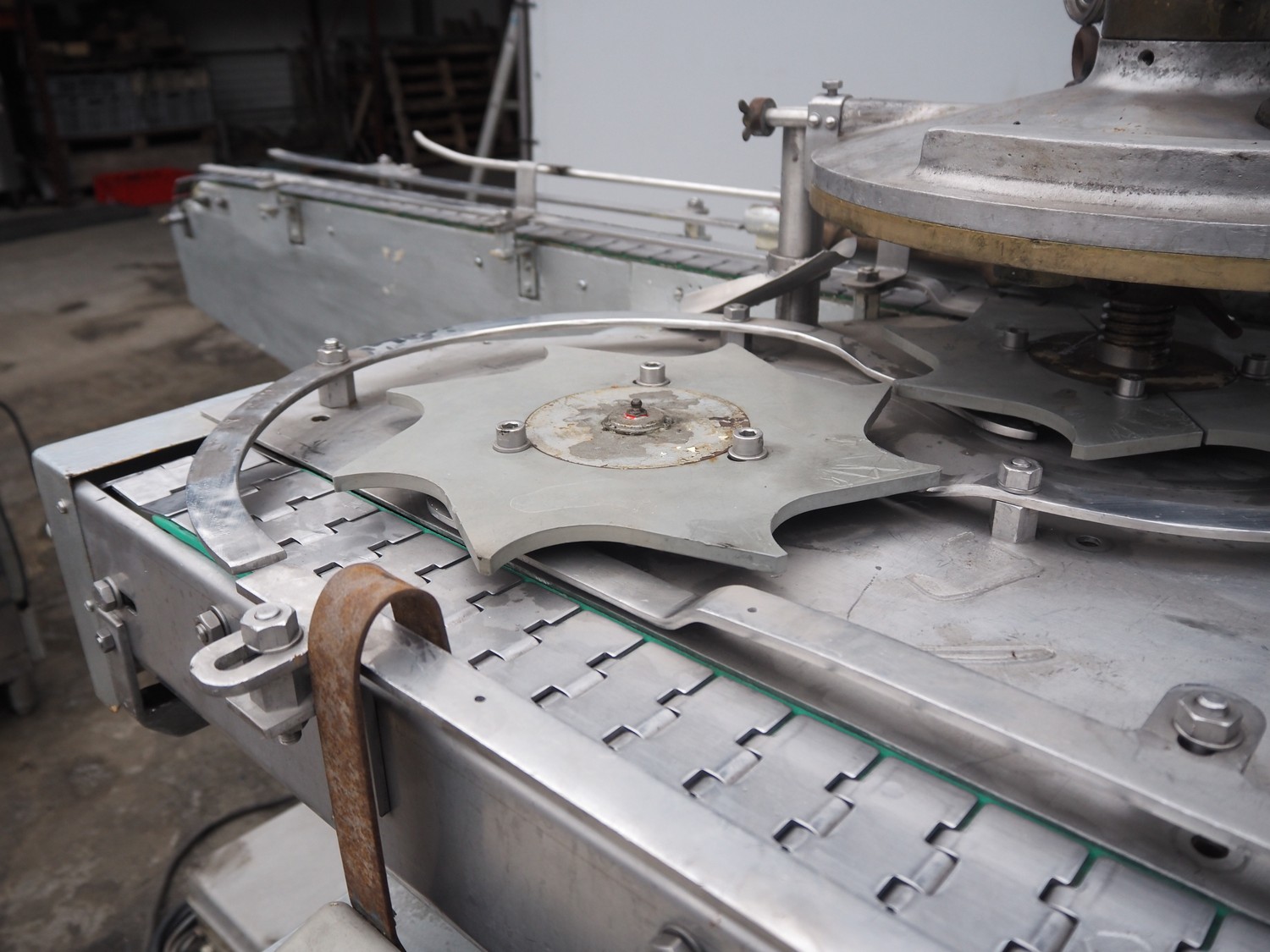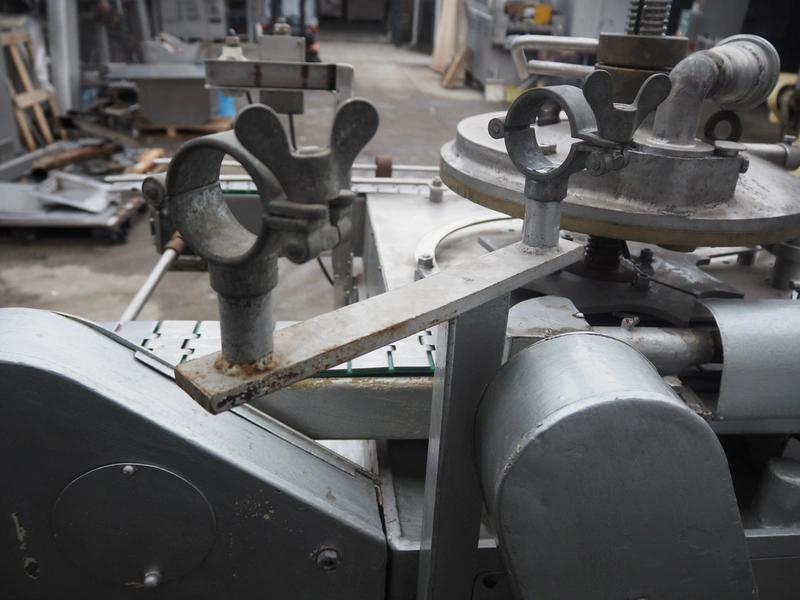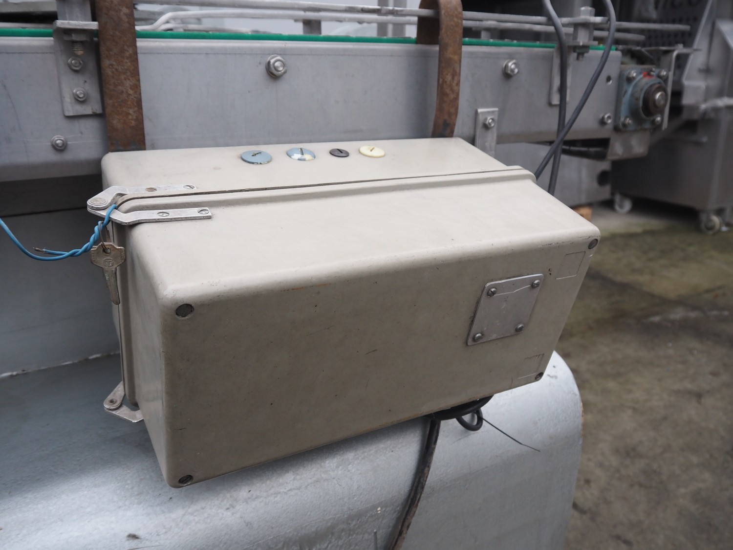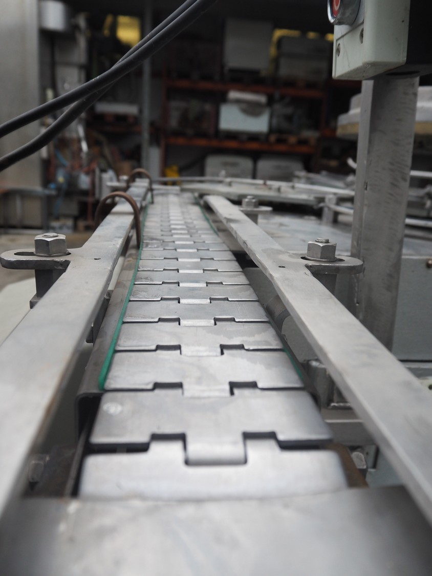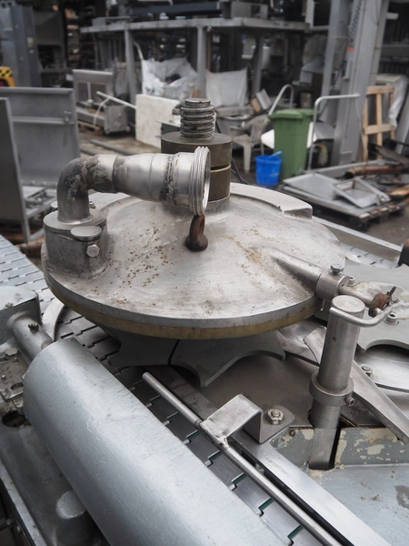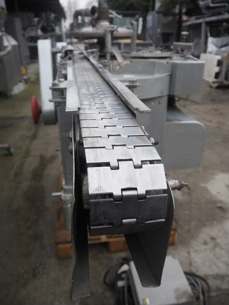 IMC can filling machine, diameter cans: 73 mm, s/s belt, belt width: (2x) 82 mm, total dimensions: 2300 mm x 1220 mm x 1410 mm.