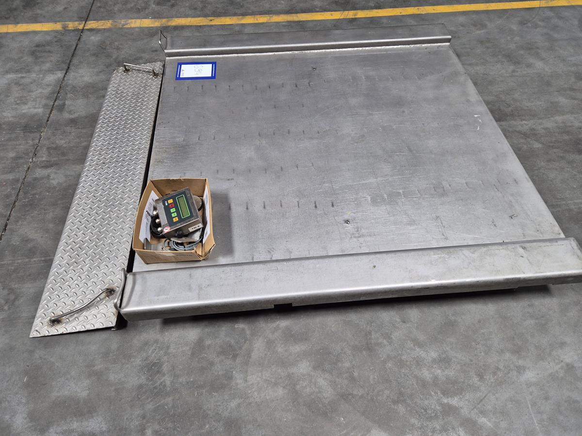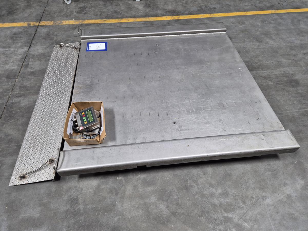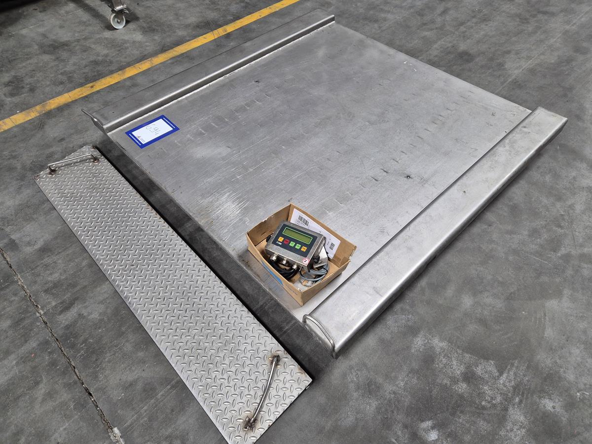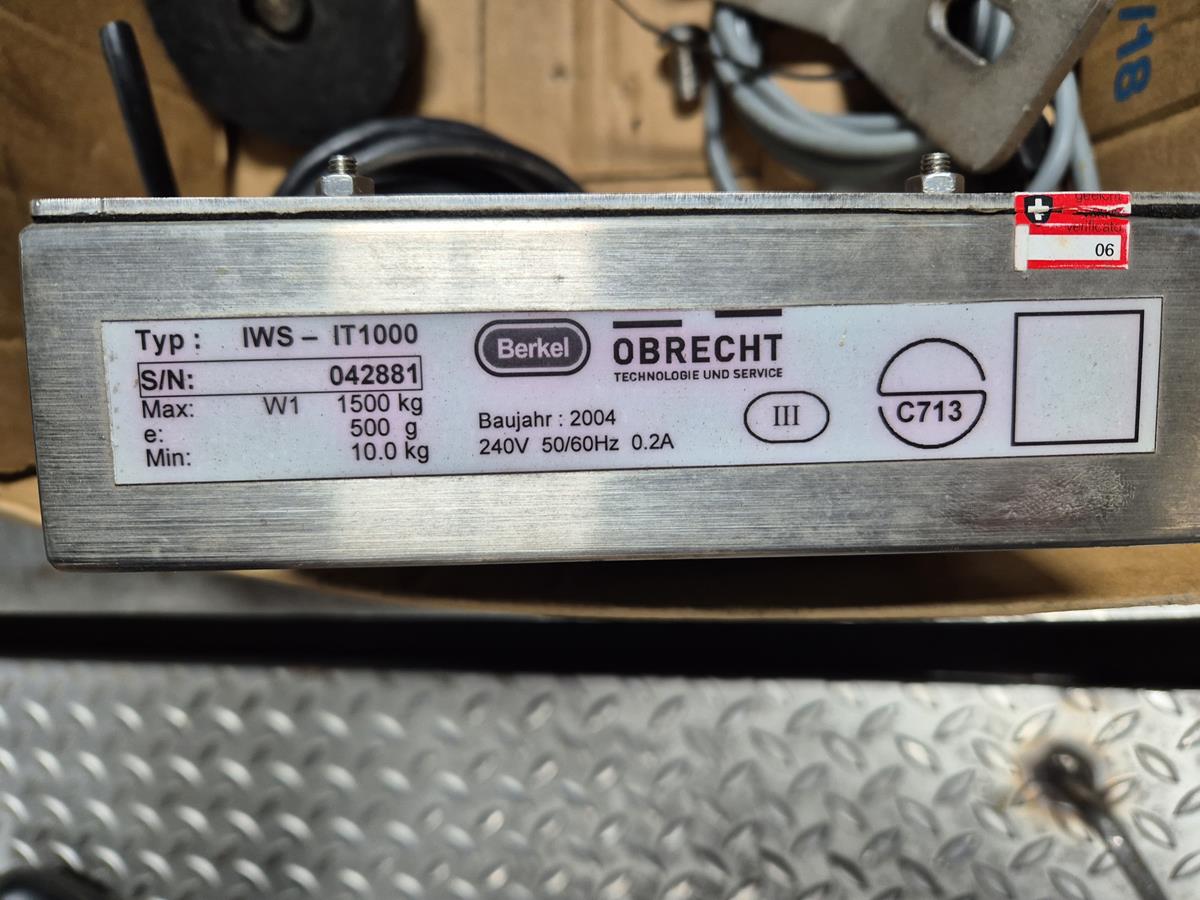 Berkel floor weighing scale, type: IWS-IT1000, serial number: 042881, year of construction: 2004, 240V, 50/60 Hz, 0.2A, max weight: 1500 kg, dimensions: 1500mm x 1550 mm x 250 mm.