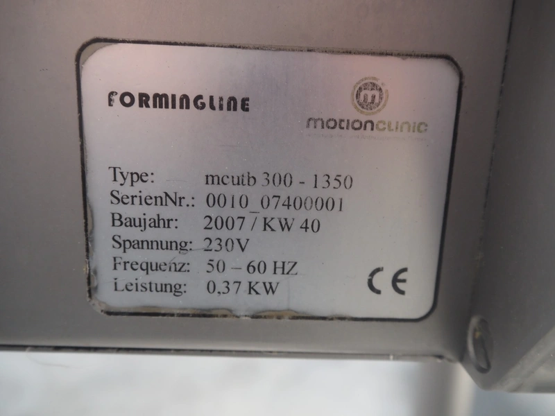 Motion Clinic mobile forming machine, type: mcbf 130, serial number: 0050 09280014, year of construction: 2009, 230 V, 50-60 Hz, diameter: 80 mm, plastic belt, belt width: 300 mm, total dimensions: 1400 mm x 700 mm x 1400 mm. With crate with parts.