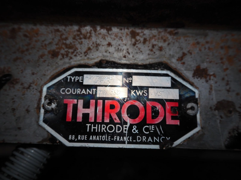 Thirode deep fryer, type: Friteuse 75 Ko, inside dimensions: 265 mm x 570 mm x 120 mm, total dimensions: 500 mm x 1150 mm x 950 mm.