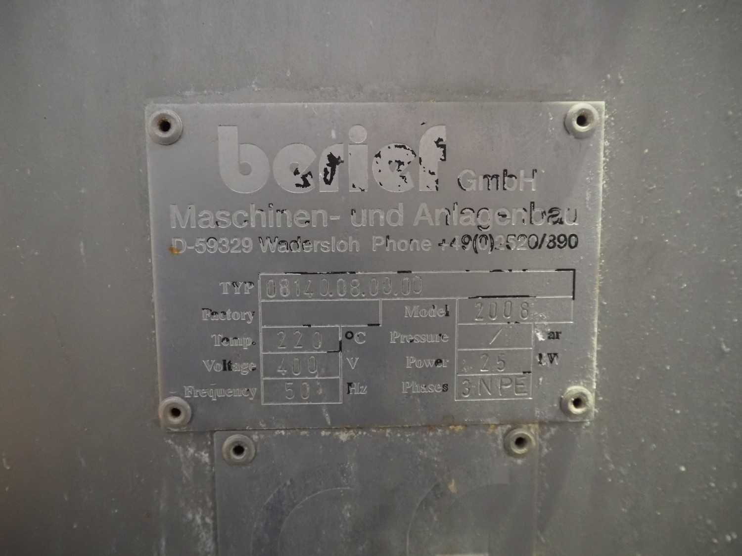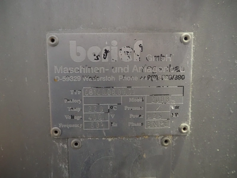 Berief GmbH tiltable roasting pan, type: 08140.08.00.00, year of construction: 2008, 400 V, 3 Ph, 50 Hz, 25 kW, inside dimensions: 1250 mm x 650 mm x 160 mm, total dimensions: 2000 mm x 950 mm x 1600 mm.