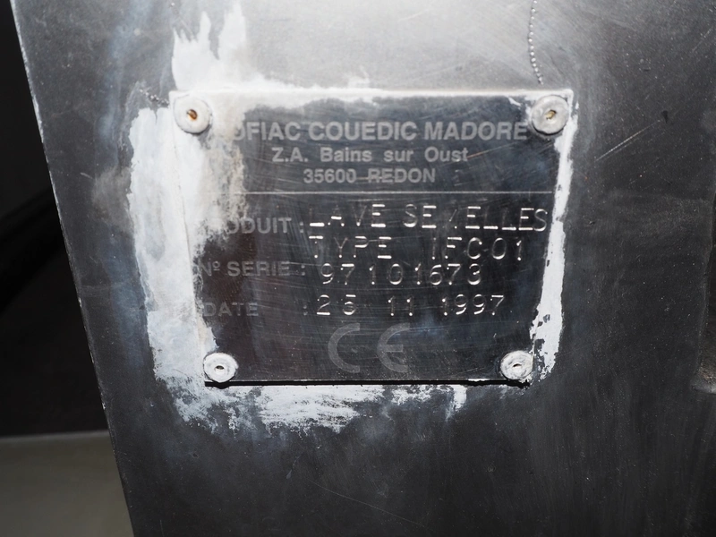 Sofiac sole cleaner, type: IFC01, serial number: 97101673, year of construction: 1997, length brush: (2x) 1000 mm, total dimensions: 2400 mm x 800 mm x 1300 mm.