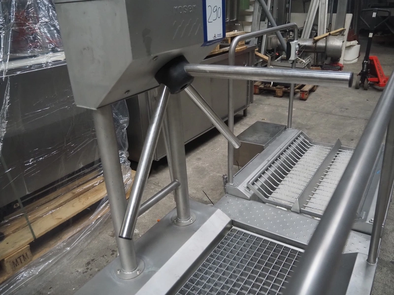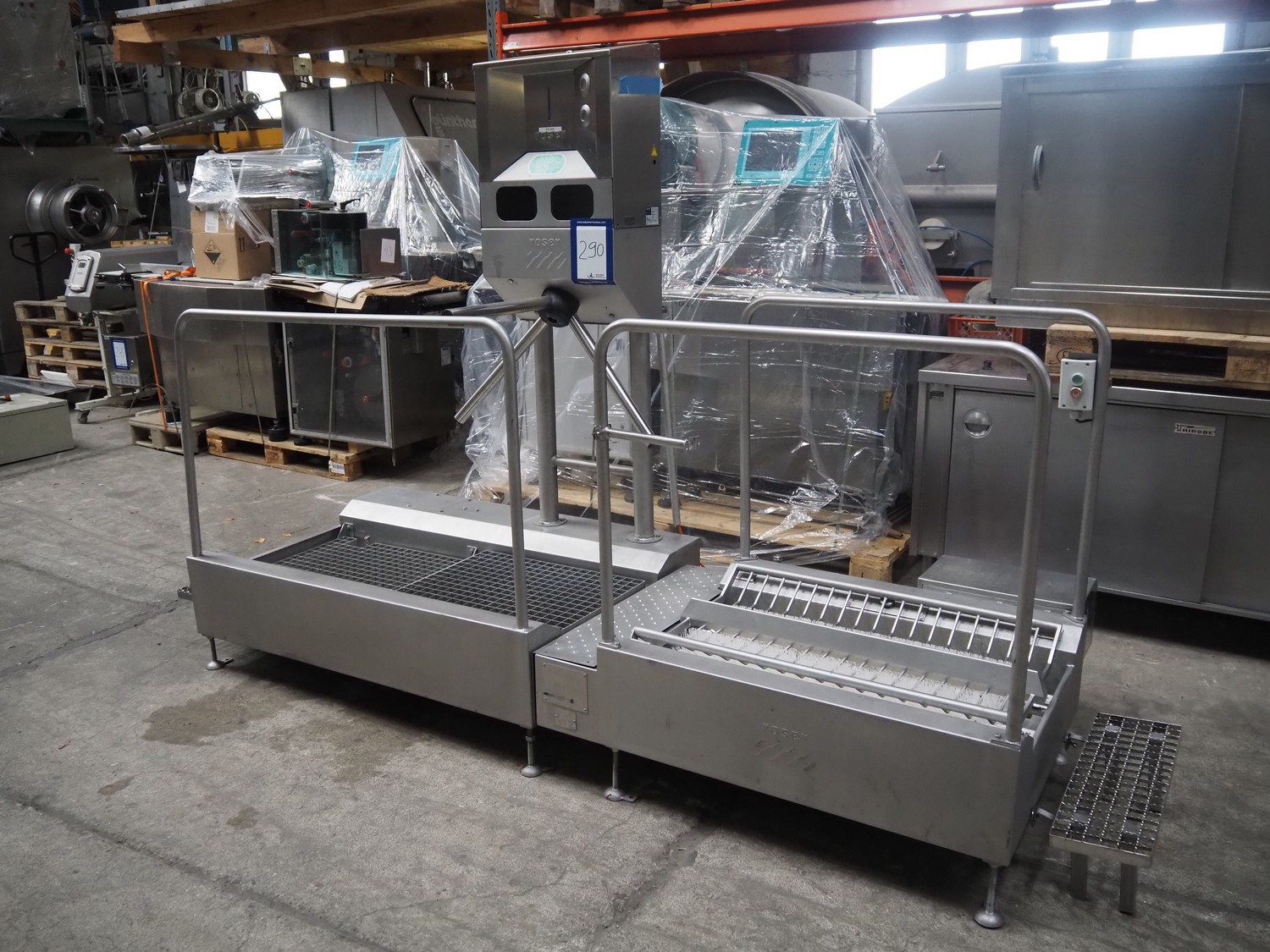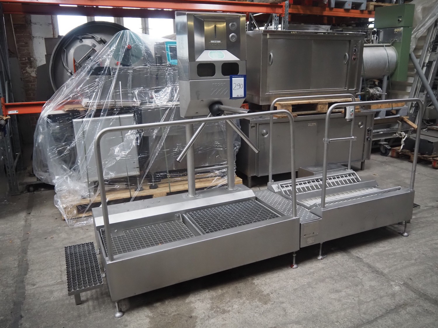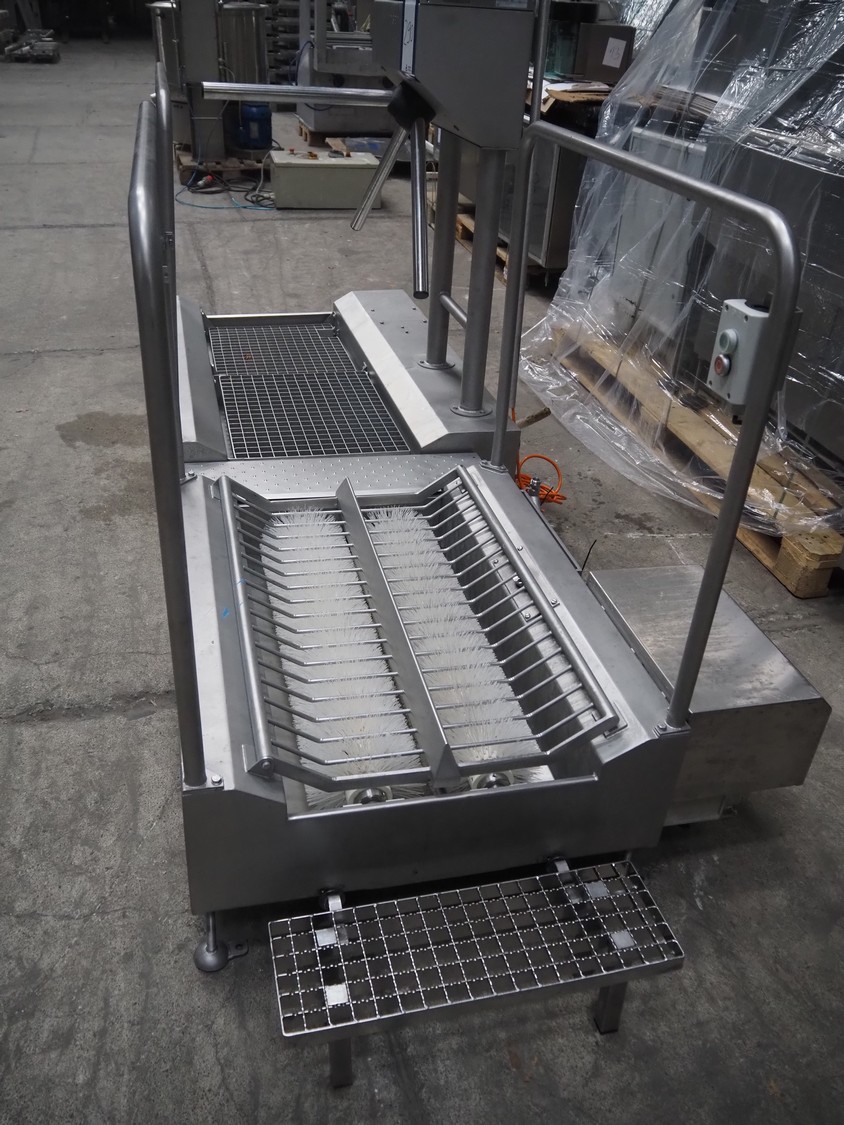 Roser hygiene station with sole cleaner, hand disinfection and tourniquet, type: 28939, serial number: 0038, year of construction: 2004, 220/380 V, 50/60 Hz, 0.75 kW, brush length: (2x) 800 mm, total dimensions: 3000 mm x 1100 mm x 1900 mm.
