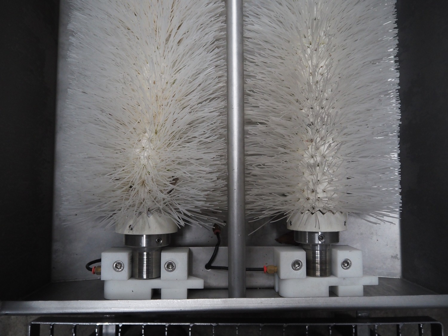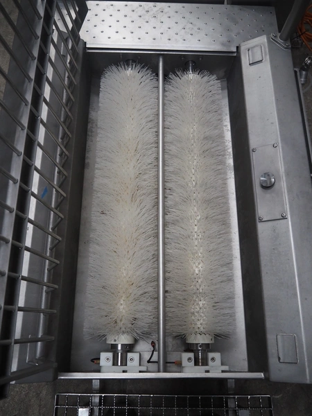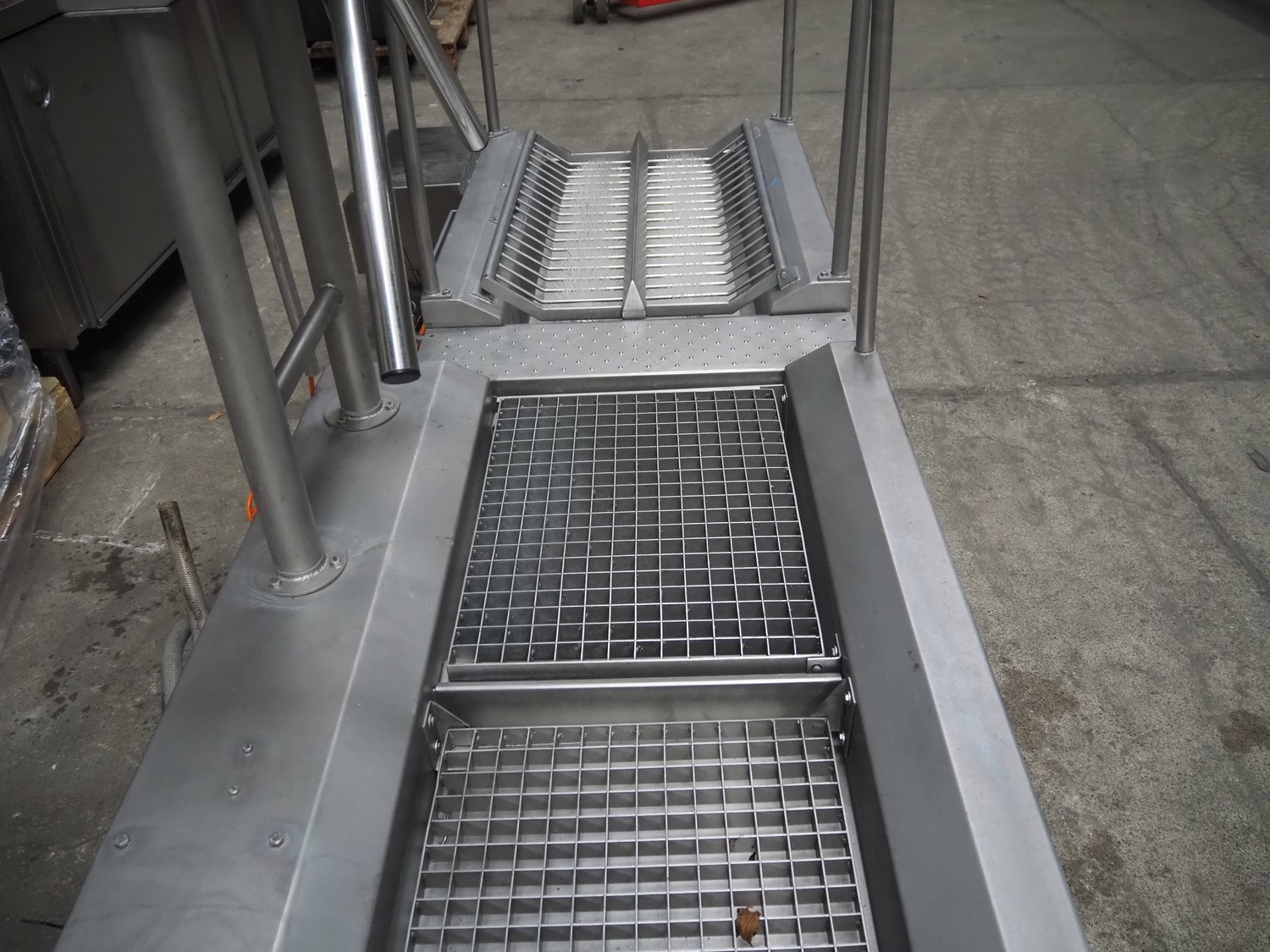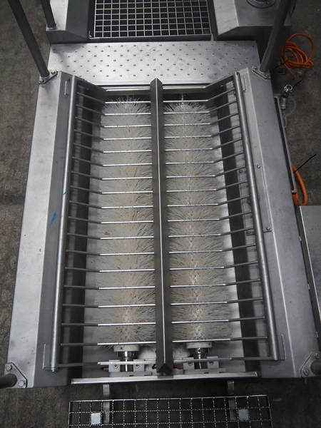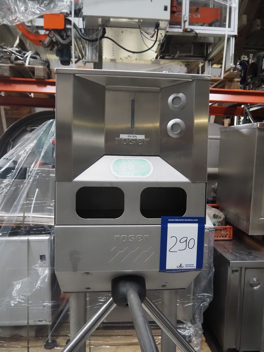 Roser hygiene station with sole cleaner, hand disinfection and tourniquet, type: 28939, serial number: 0038, year of construction: 2004, 220/380 V, 50/60 Hz, 0.75 kW, brush length: (2x) 800 mm, total dimensions: 3000 mm x 1100 mm x 1900 mm.
