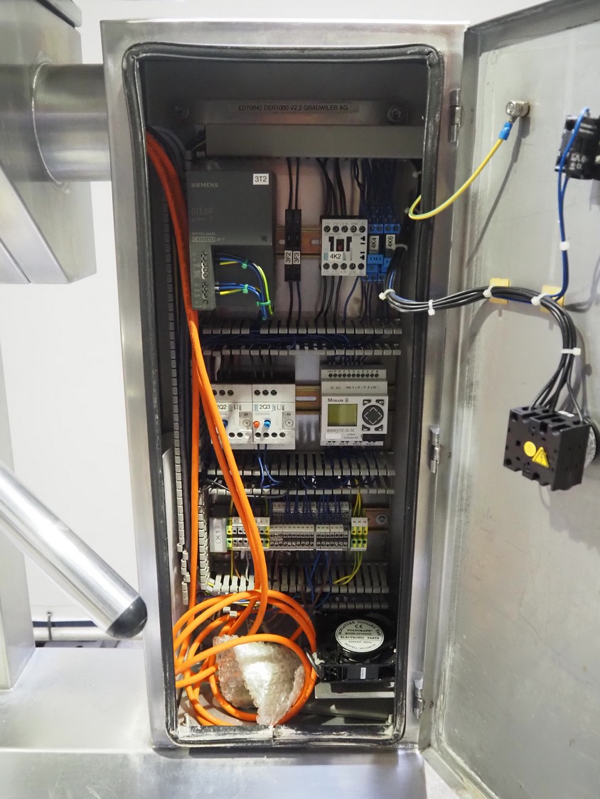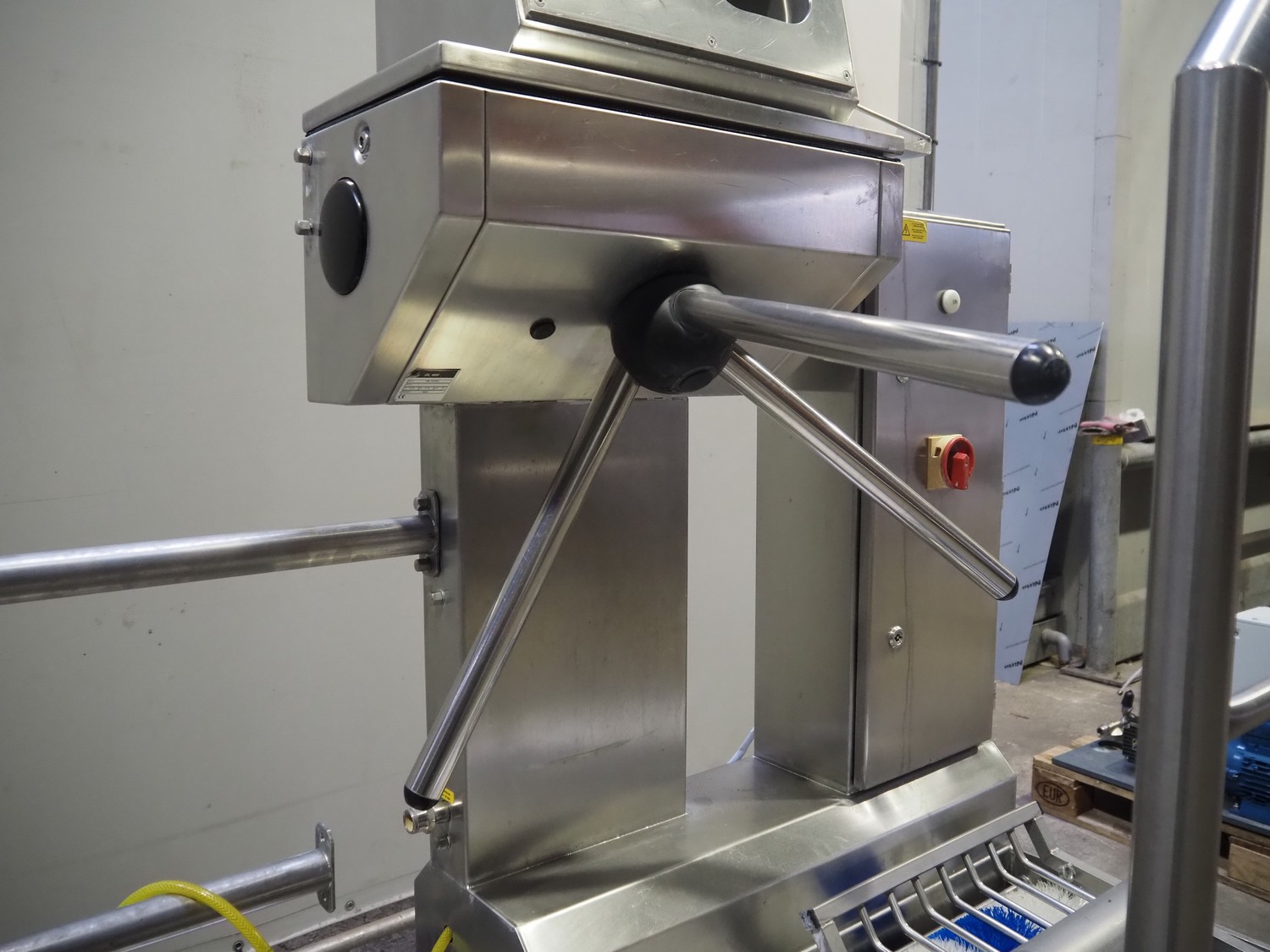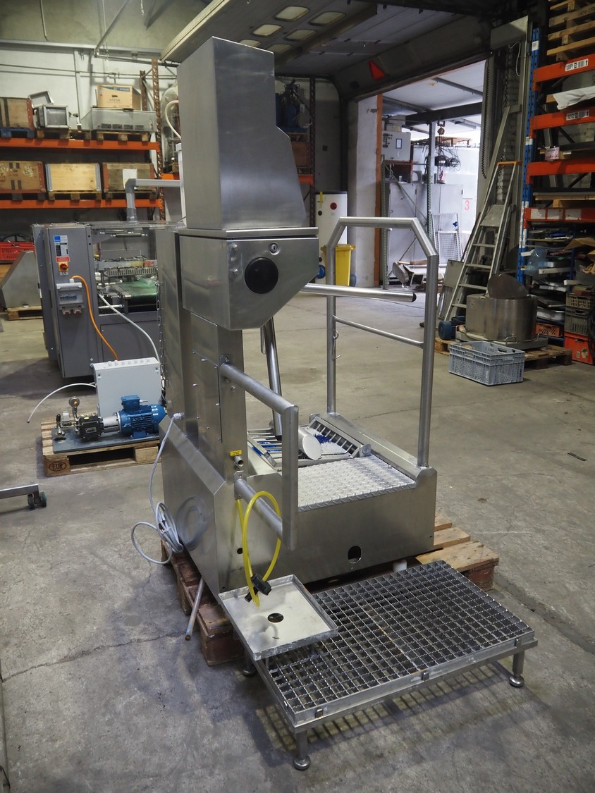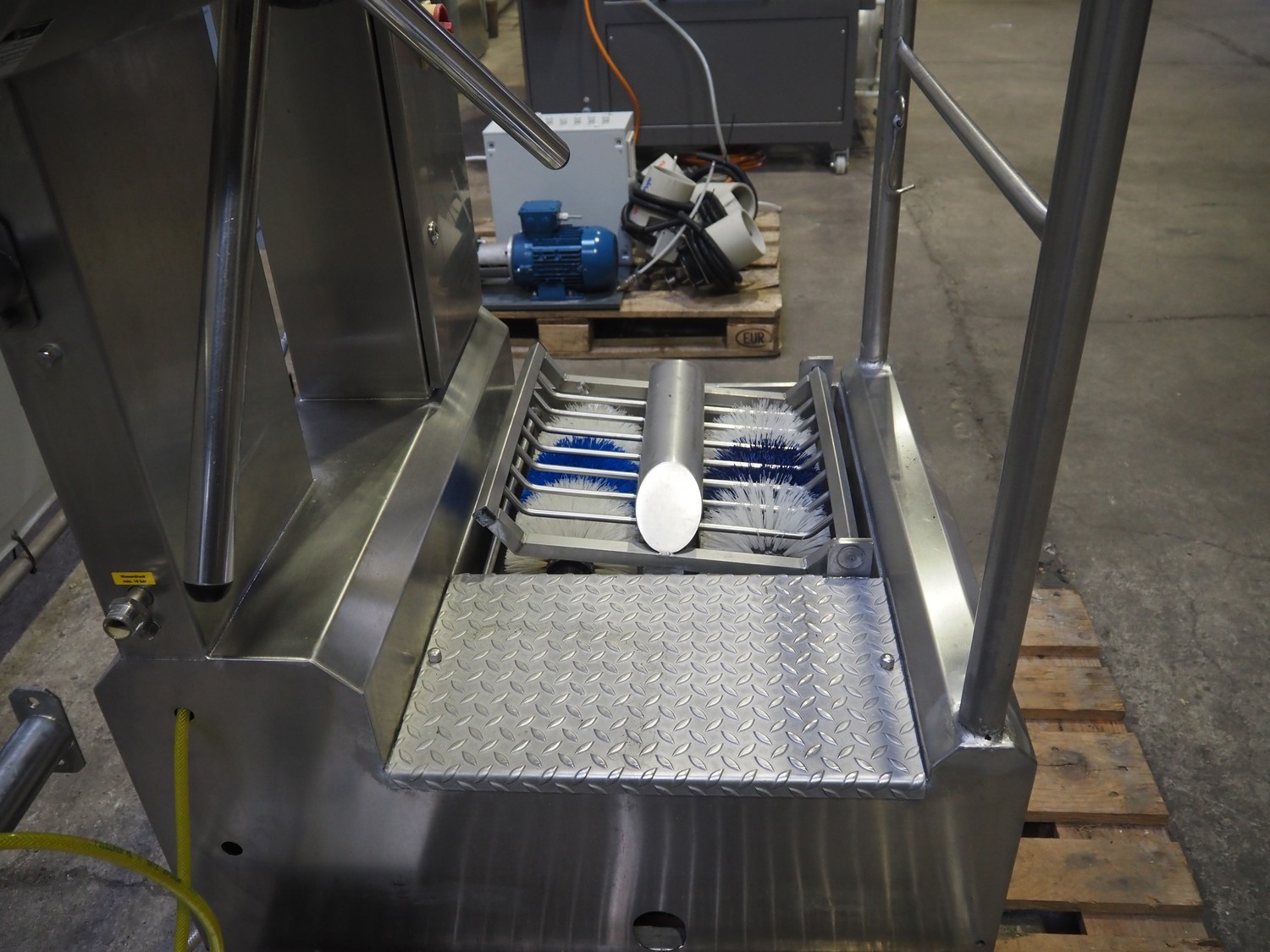 EDTA GmbH hygiene station with sole cleaner, hand disinfection and tourniquet, type: DSR100005A08, year of construction: 2005, 230/400 V, 3 A, 1 kW, brush length: 320 mm, total dimensions: 900 mm x 1700 mm x 1800 mm.