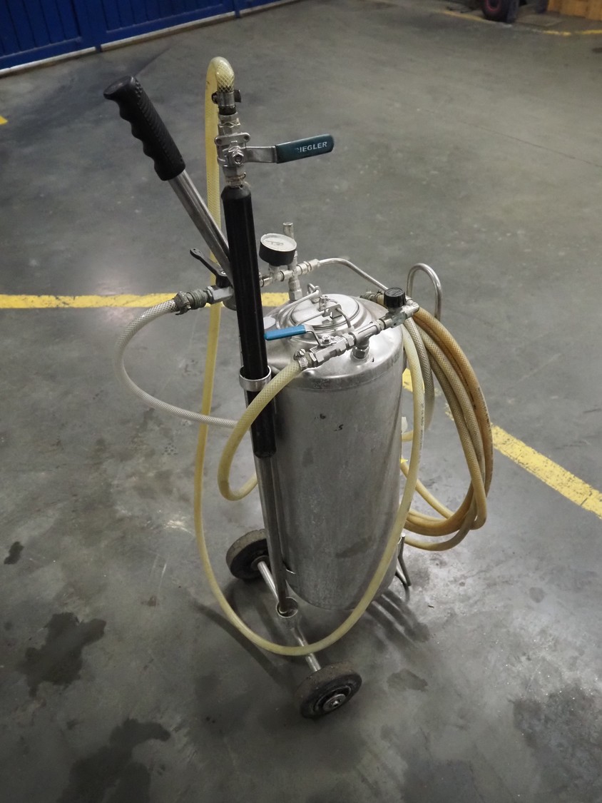 Mobile pressure vessel, dimensions: 400 mm x 370 mm x 1050 mm.