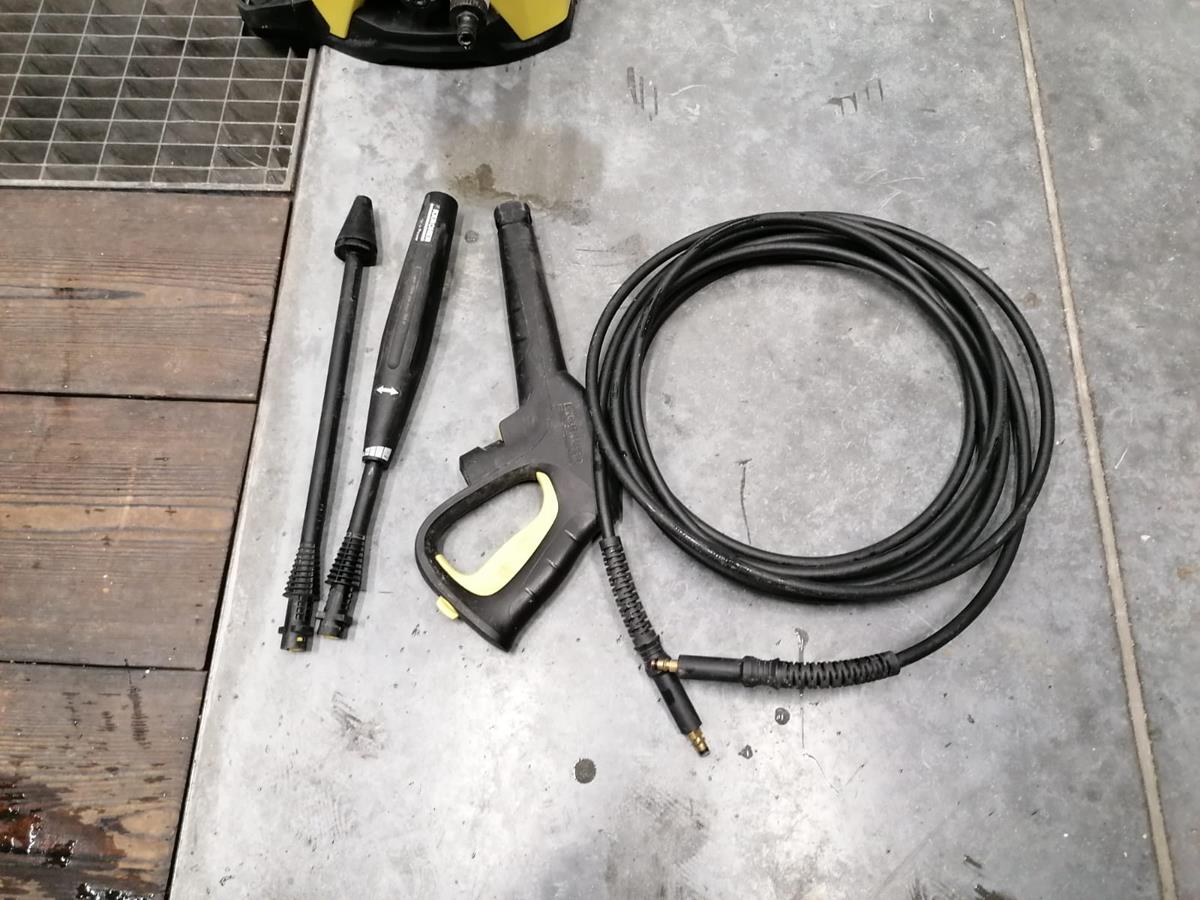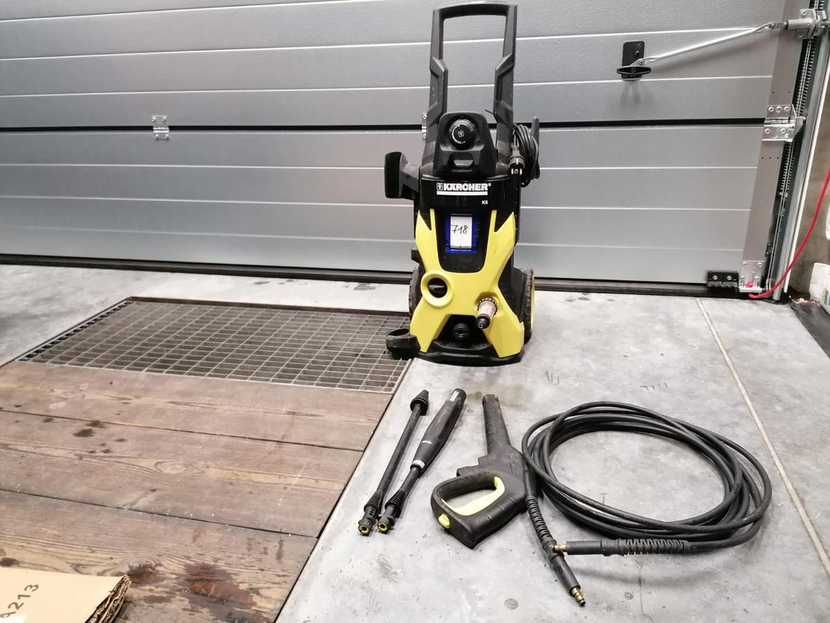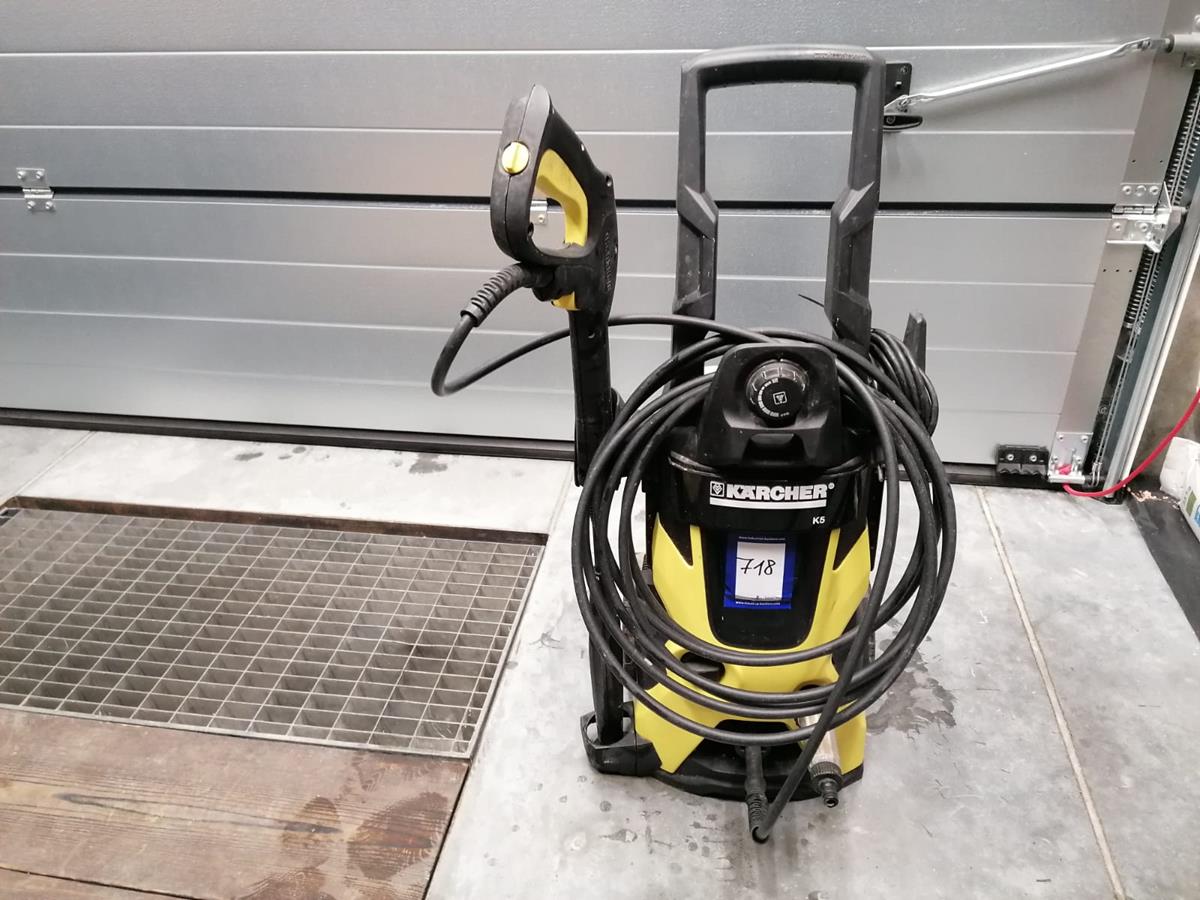 Kärcher pressure washer, type: K5, serial number: 034496, 230 V, 50 Hz, 2,1 kW, max pressure: 14,5 Mpa, dimensions: 450 mm x 400 mm x 900 mm.