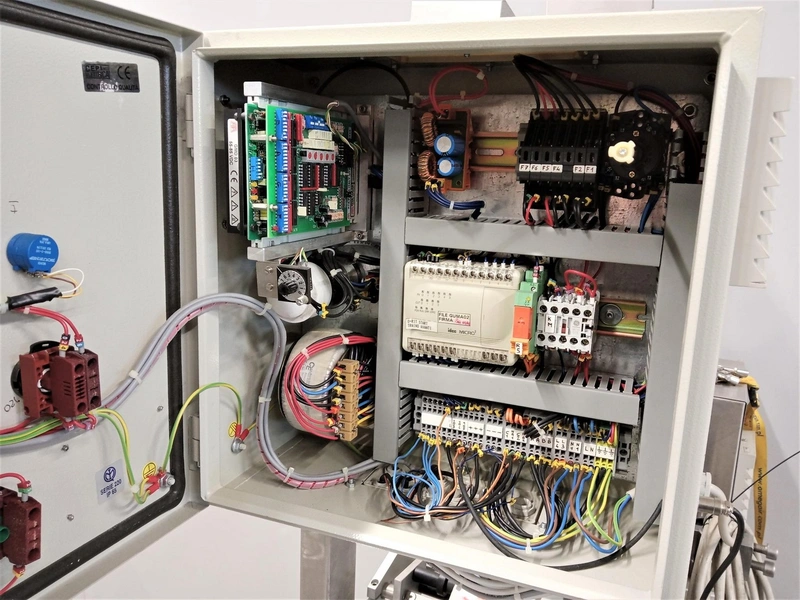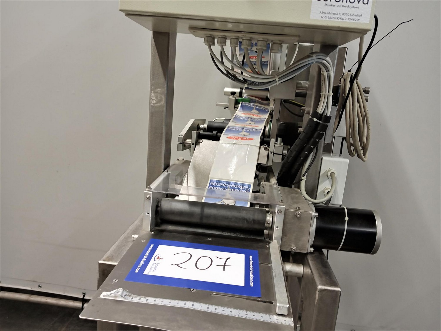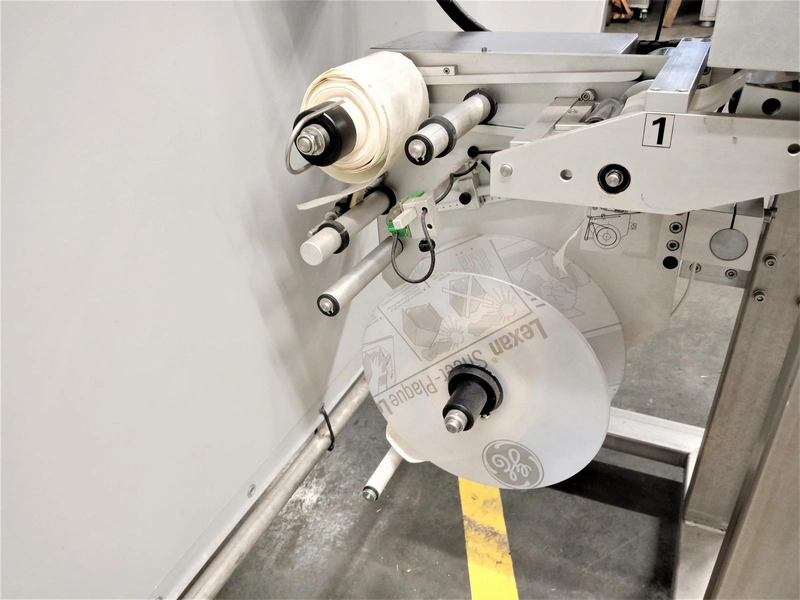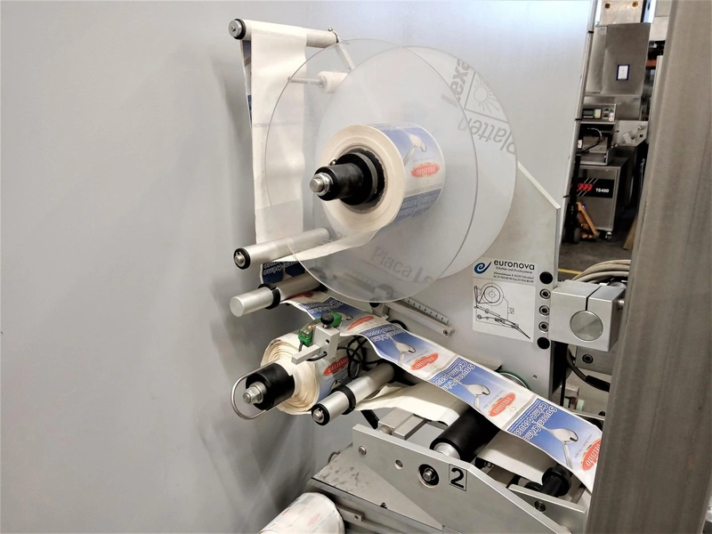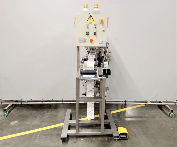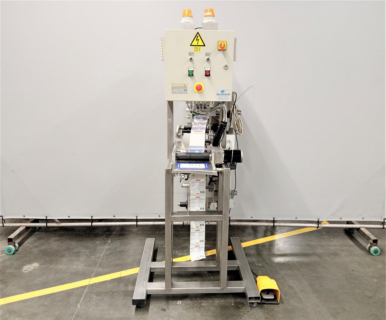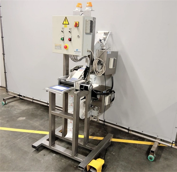 Termostabile labelling machine, model: 10251, machine number: 01LT86/C, year of production: 2002, 220 V, 50 Hz, 1.3 kW, 6 A, weight: 200 kg, dimensions: 1100 mm x 800 mm x 1900 mm.
