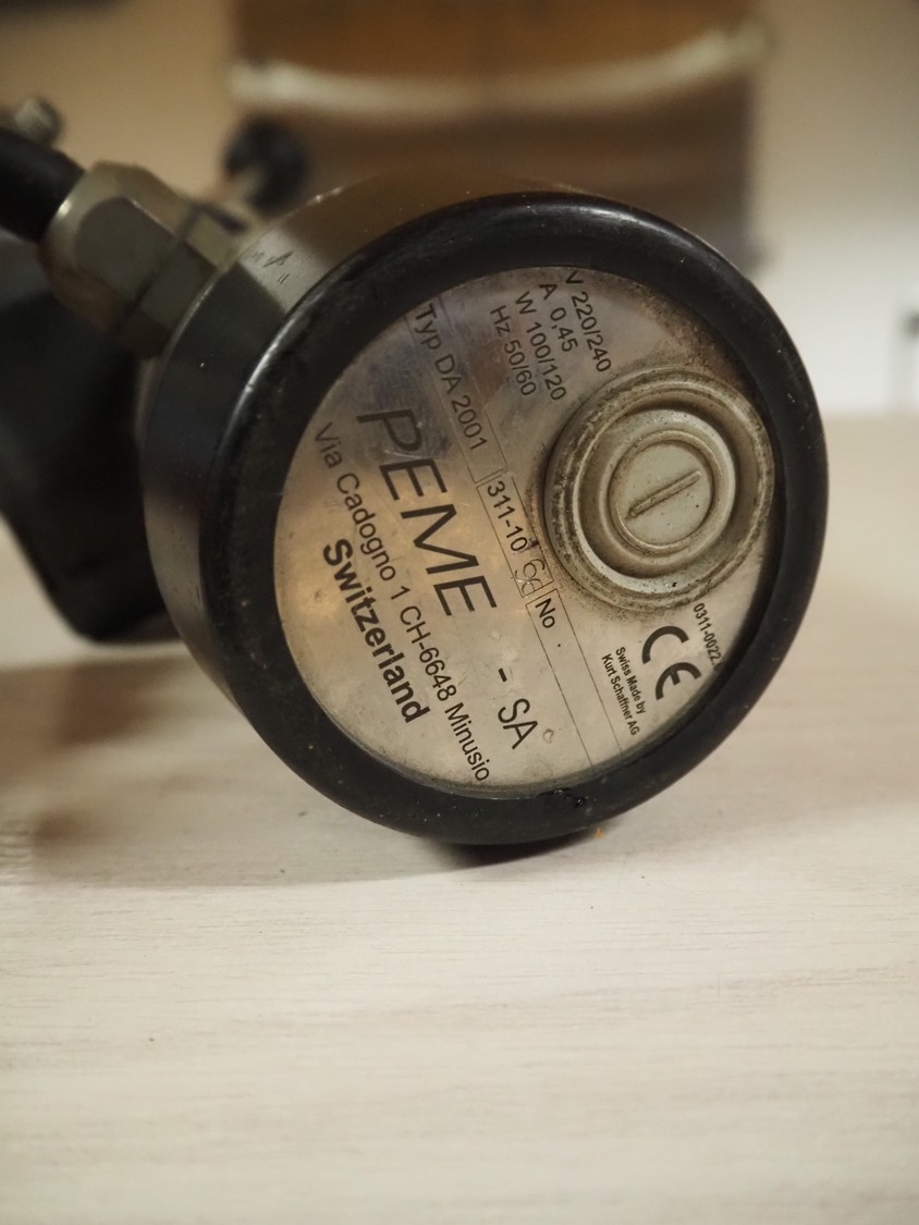 PEME SA casing spooler, type: DA 2001, year of construction: 1996, 220-240 V, 50-60 Hz, 0.45 A, 100-120 W, dimensions: 360 mm x 140 mm x 140 mm.