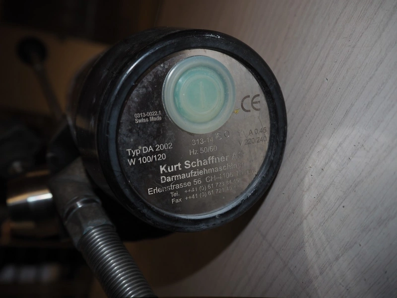 Kurt Schaffner AG casing spooler, type: DA 2002, number: 313-14, 220-240 V, 50/60 Hz, 0.45 A, 100/120 W, dimensions: 360 mm x 140 mm x 140 mm.
