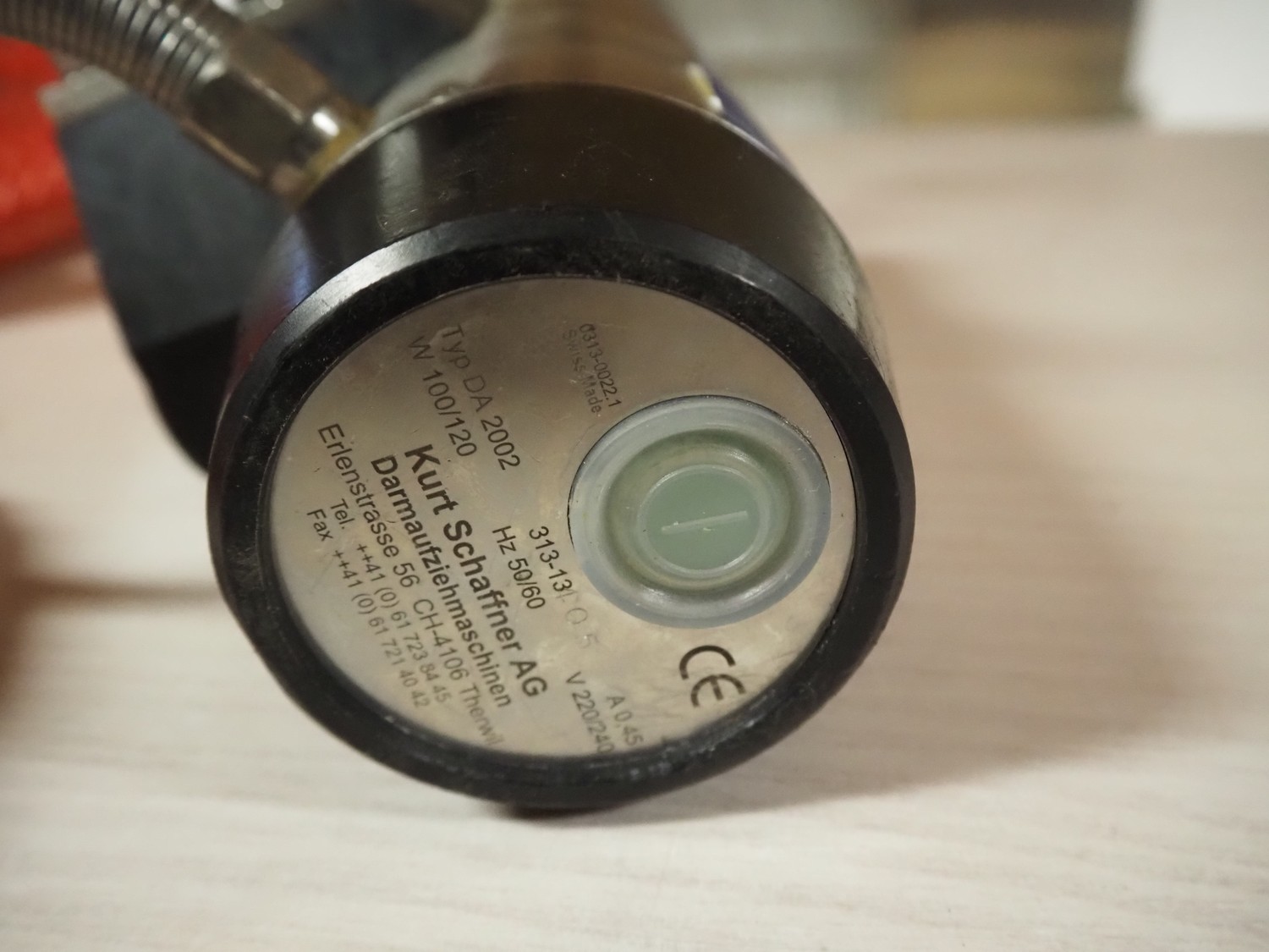 Kurt Schaffner AG casing spooler, type: DA 2002, number: 313-13, 220-240 V, 50/60 Hz, 0.45 A, 100/120 W, dimensions: 360 mm x 140 mm x 140 mm.