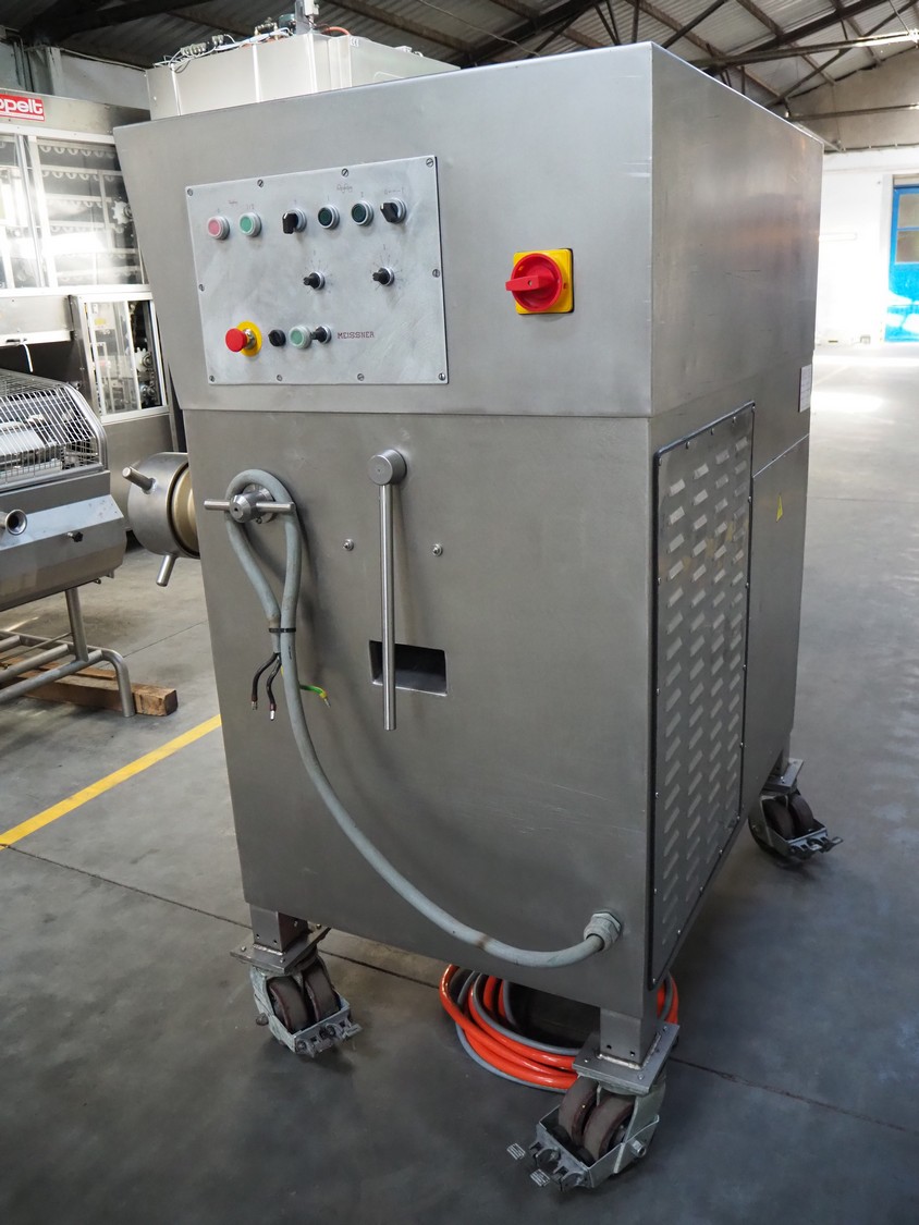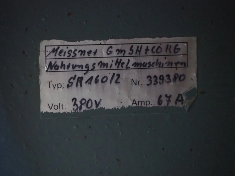 Meissner mobile grinder, type: SR-160/2, machine number: 301076, 400 V, 3 Ph, 50 Hz, 28 kW, diameter plate: 160 mm, total dimensions: 1400 mm x 1100 mm x 1950 mm. Including pallet with switch cabinet. Overhauled by Servo in 2022.