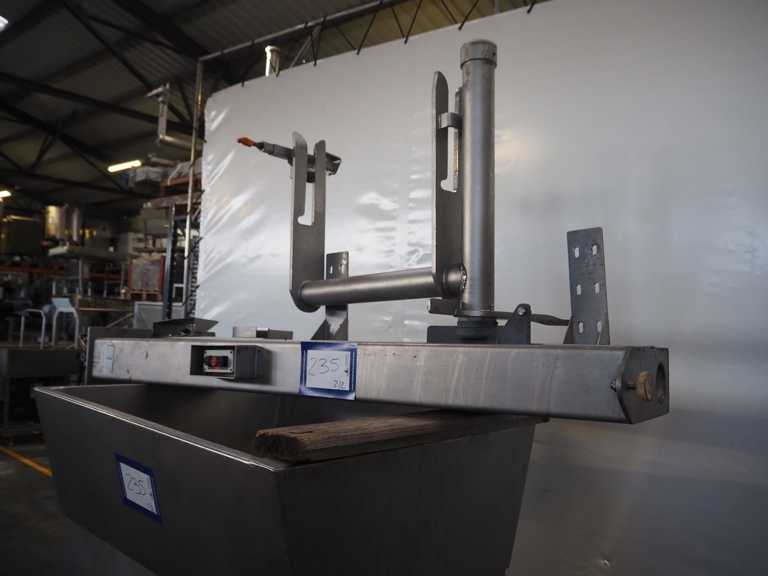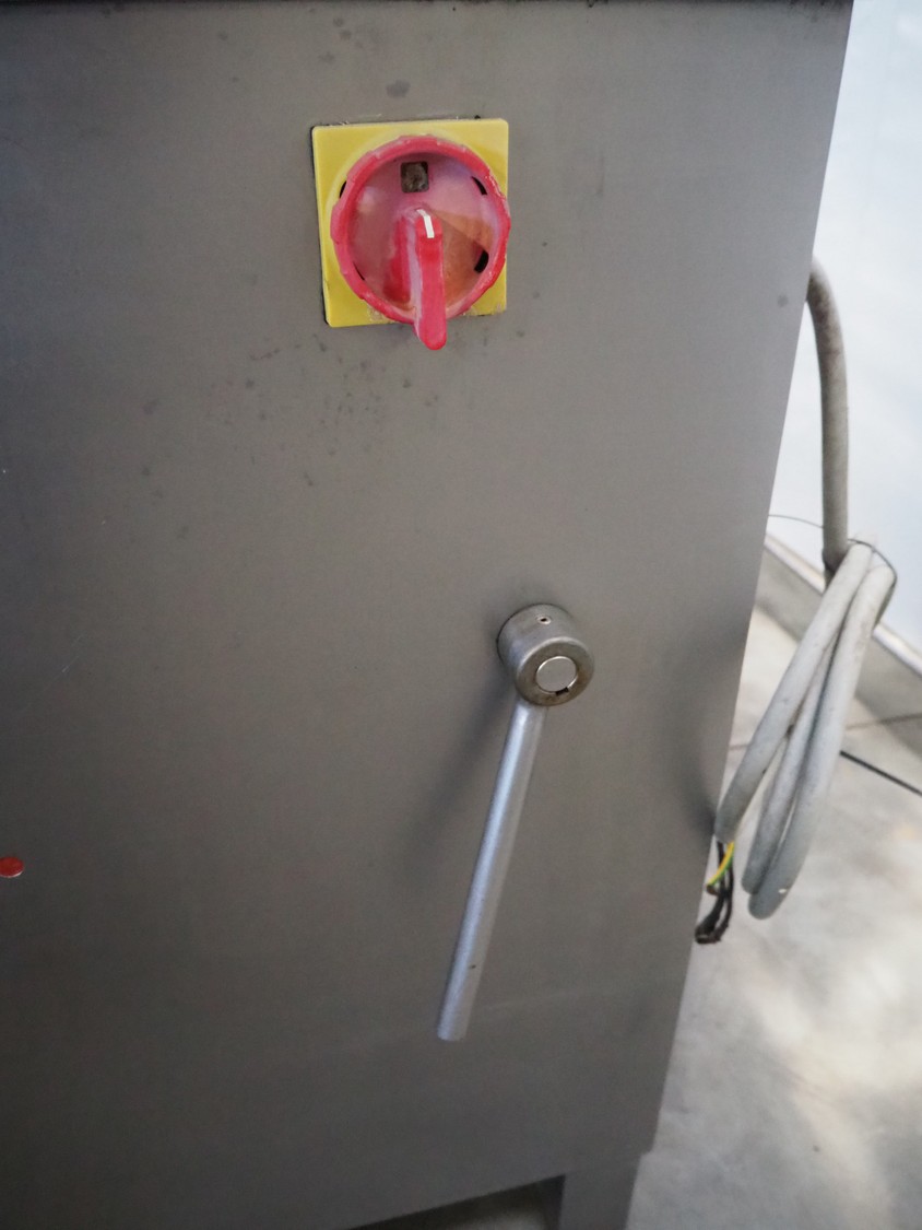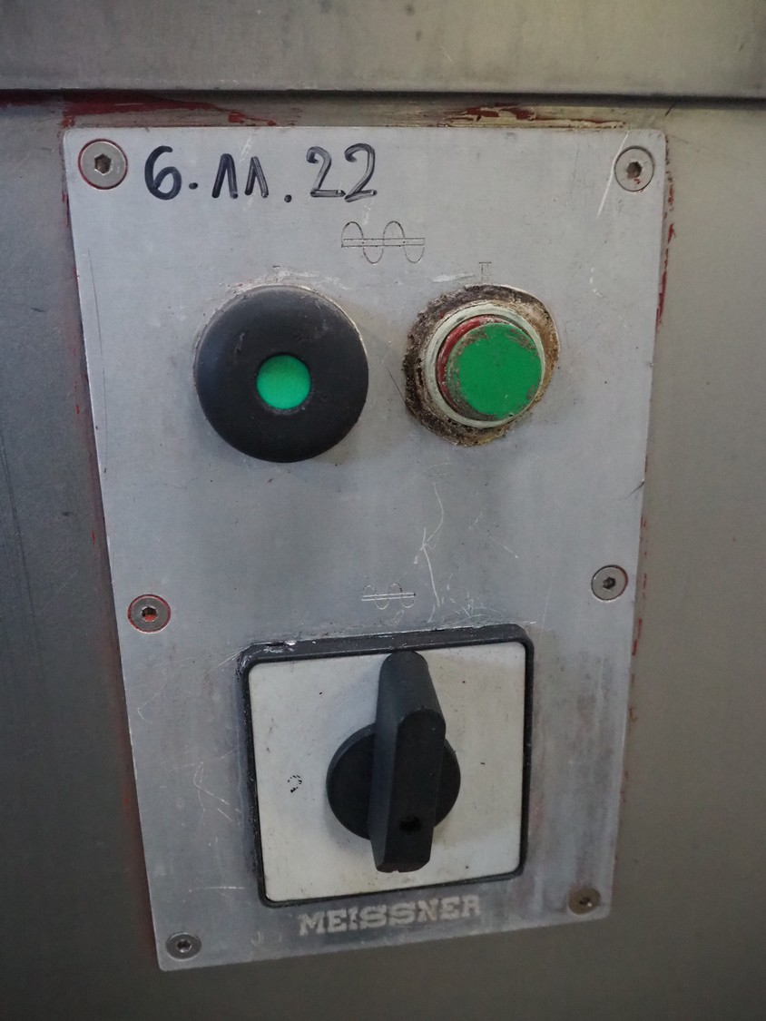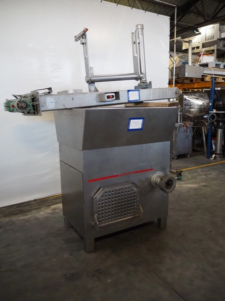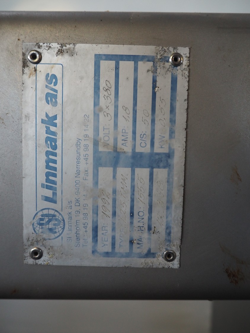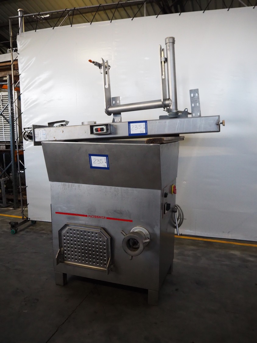 Meissner grinder with Linmark a/s lifter for 200 liter meat bins, type grinder: GW-130/2, number: 3292126, 380 V, 50 Hz, 33 A, 15 kW, plate diameter: 130 mm, total dimensions: 1250 mm x 980 mm x 1540 mm, type lifter: L25TMM, number: 1555, year of construction: 1992, 380 V, 3 Ph, 1.8 A, 0.55 kW, lifting height: 1500 mm, total dimensions: 2250 mm x 600 mm x 1000 mm.