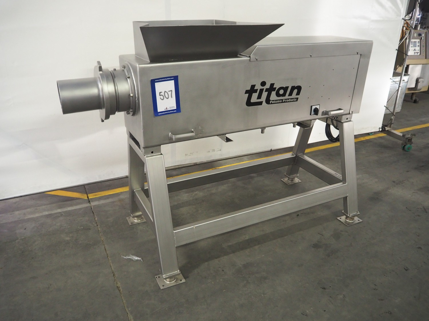 Titan Petsmo grinder, plate diameter: 200 mm, total dimensions: 1950 mm x 810 mm x 1390 mm. Overhauled by Servo.