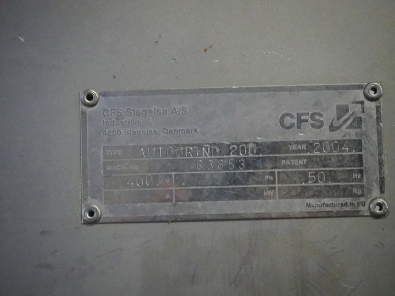 CFS grinder, type: Autogrind 200, machine number: 63653, year of construction: 2004, 400 V, 50 Hz, plate diameter: 200 mm, total dimensions: 2500 mm x 1150 mm x 1800 mm.