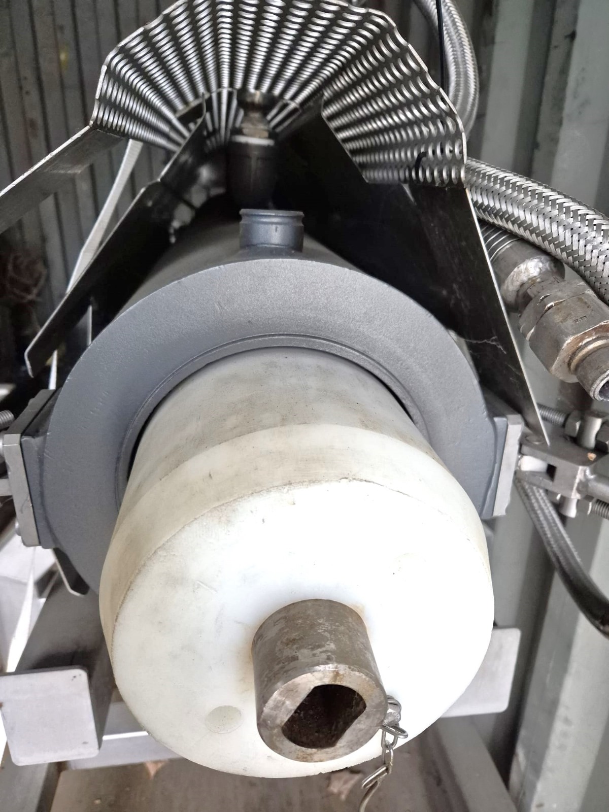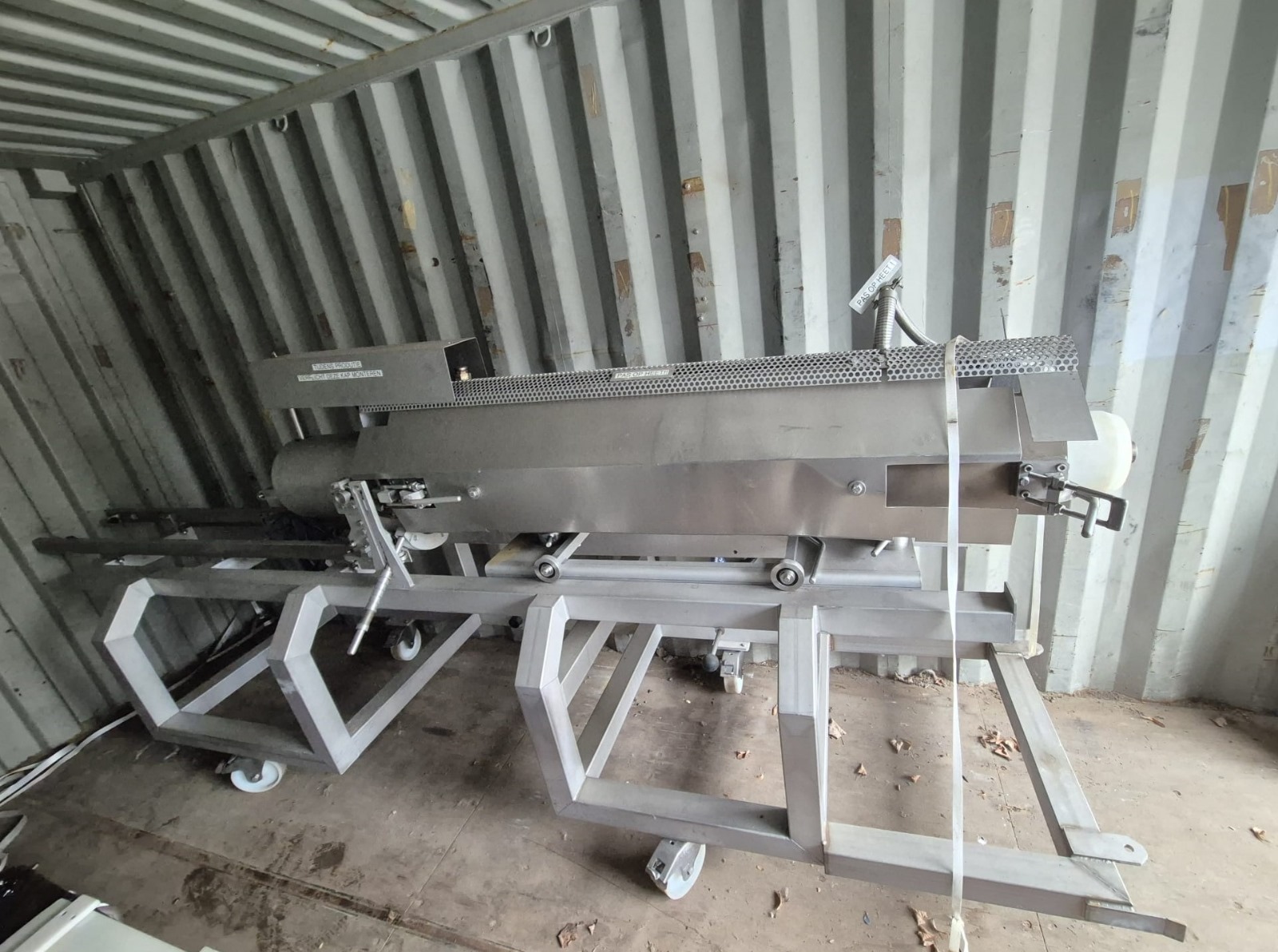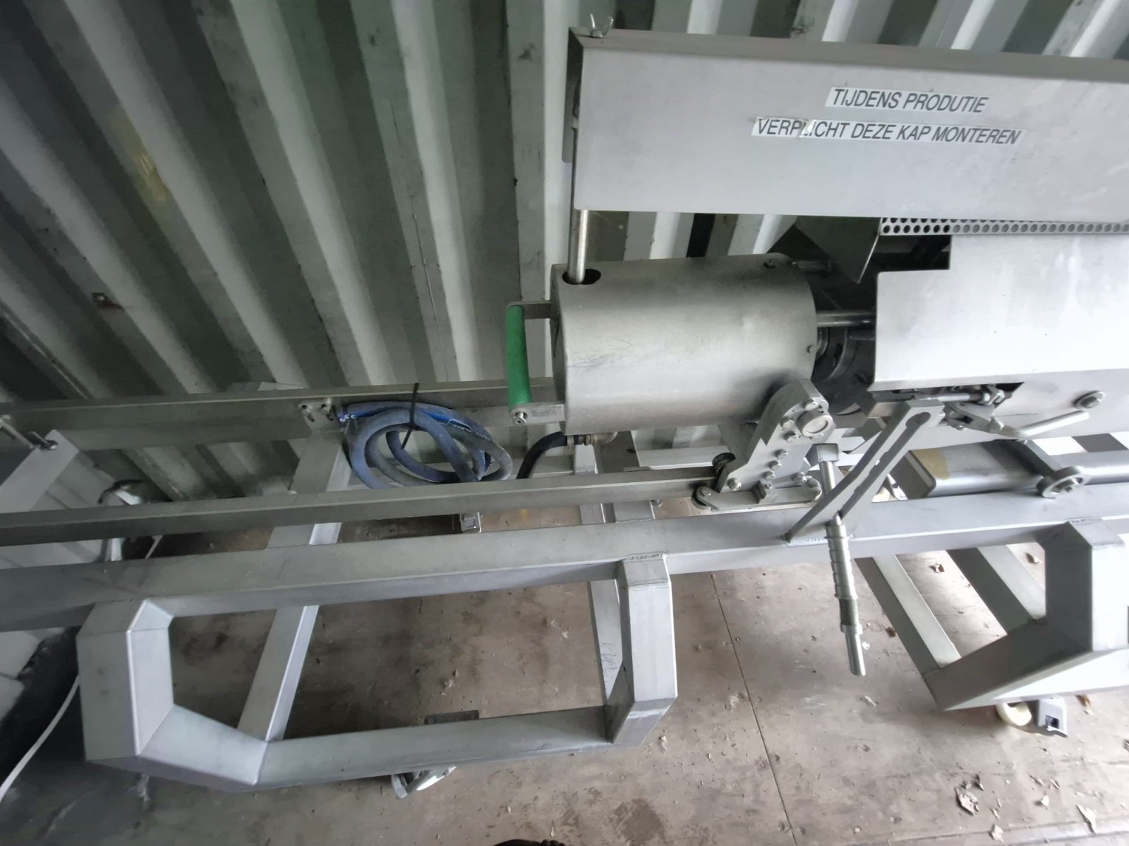 Mobile cooking screw used for Wolfking C400UNI grinder, diameter screw: 250 mm, total dimensions: 4000 mm x 900 mm x 1400 mm.
