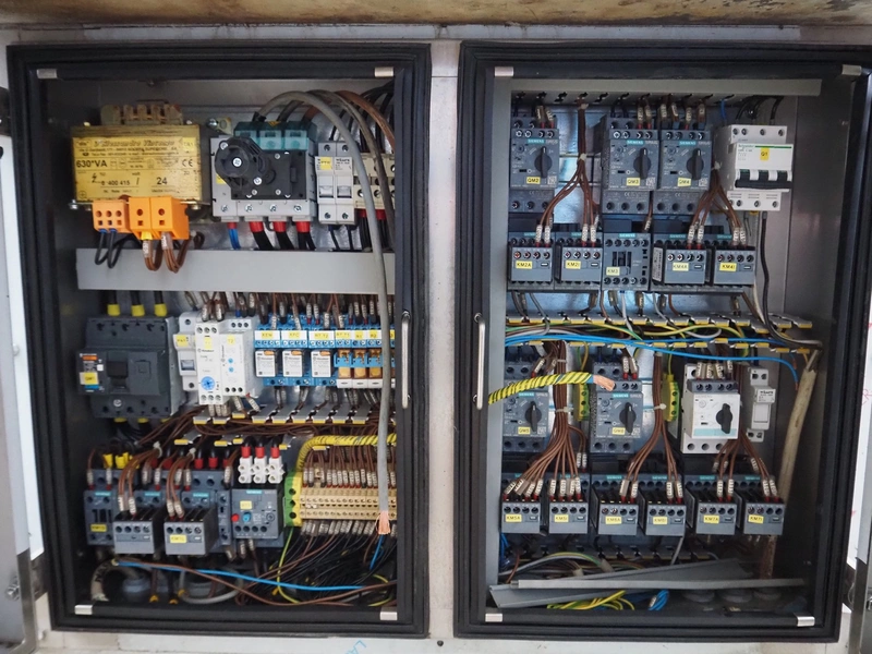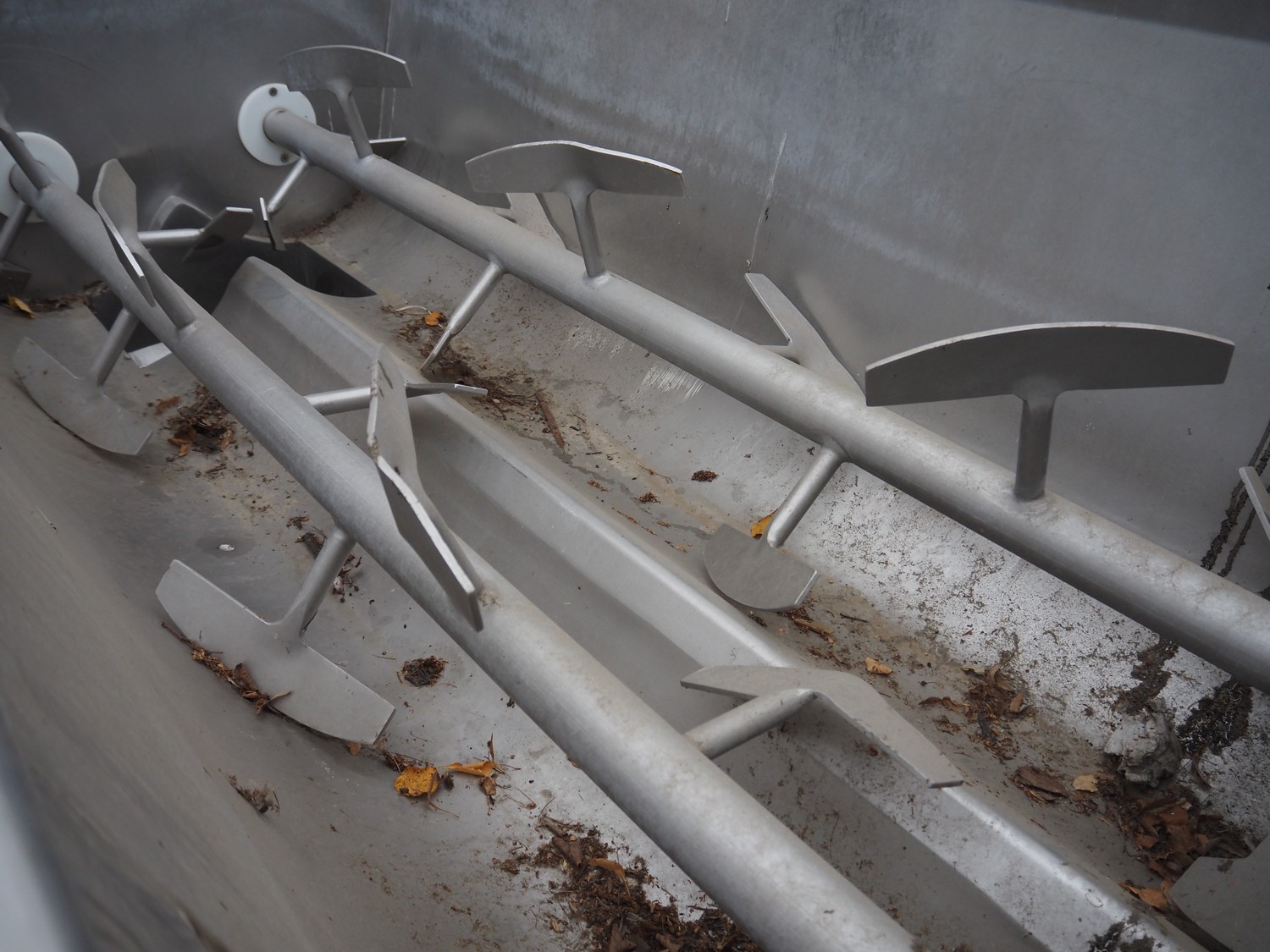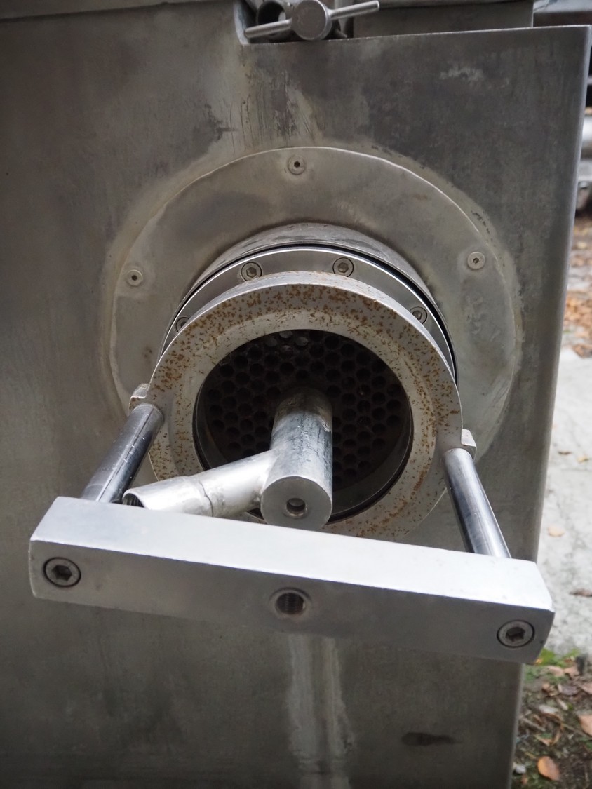 Double shaft paddle mixer-grinder, plate diameter: 178 mm, total dimensions: 2850 mm x 1200 mm x 1750 mm.