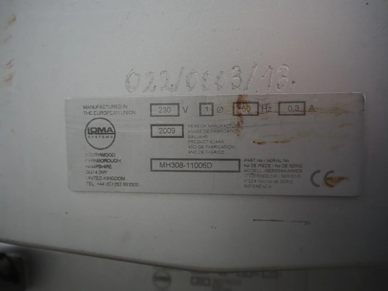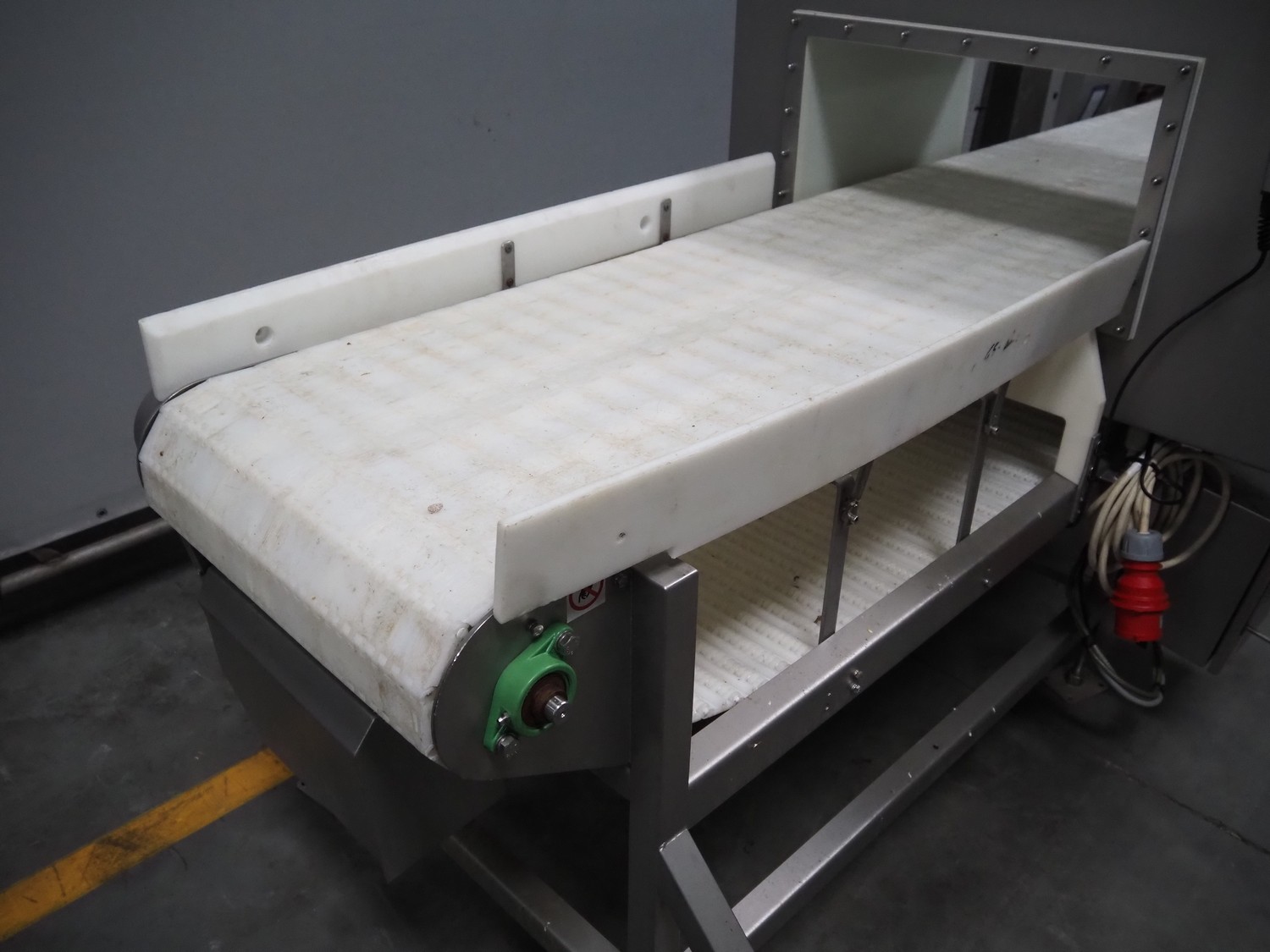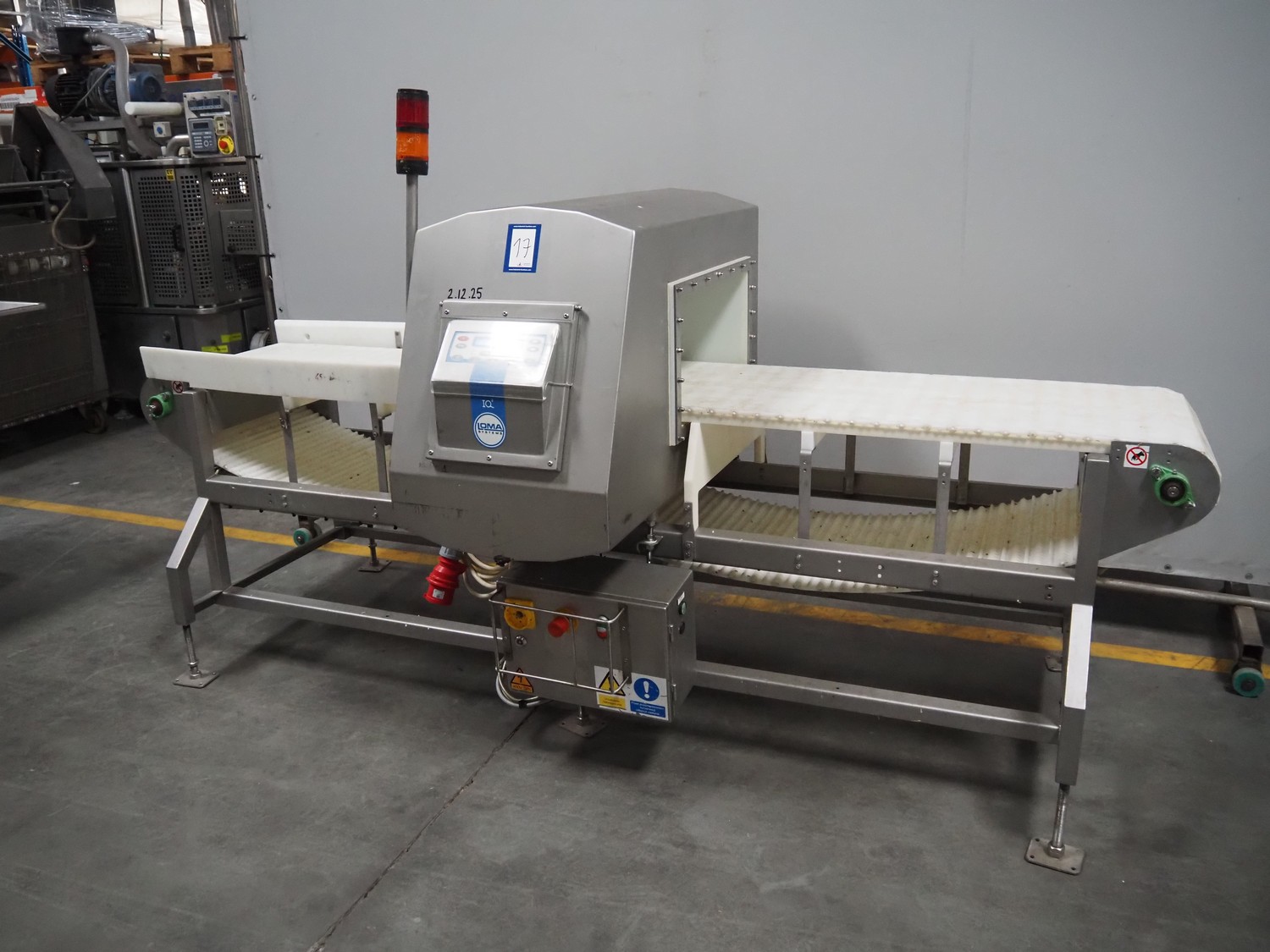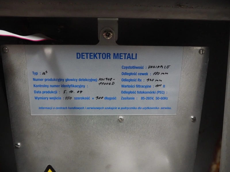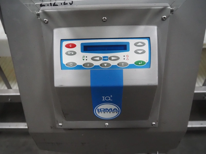 Loma systems metal detector, type: IQ3, serial number: MH308-11006D, year of construction: 2009, 50 Hz, 230 V, 0.3 A, plastic belt, belt width: 500 mm, clearance: 540 mm x 245 mm, total dimensions: 2650 mm x 1200 mm x 1550 mm.