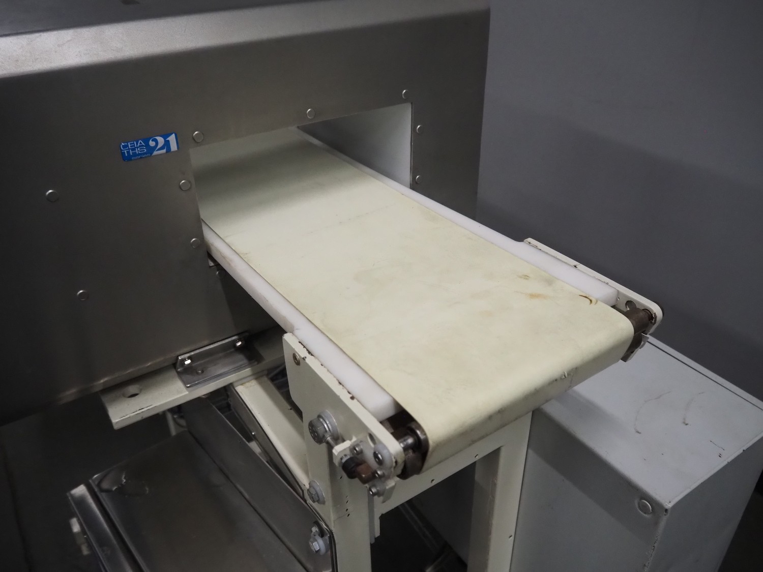 Ceia mobile metal detector, model: T/21, serial number: 21000249055, 115/230 V, 50-60 Hz, 60 VA, plastic belt, belt width: 200 mm, clearance: 250 mm x 99 mm, total dimensions: 1150 mm x 780 mm x 1150 mm.