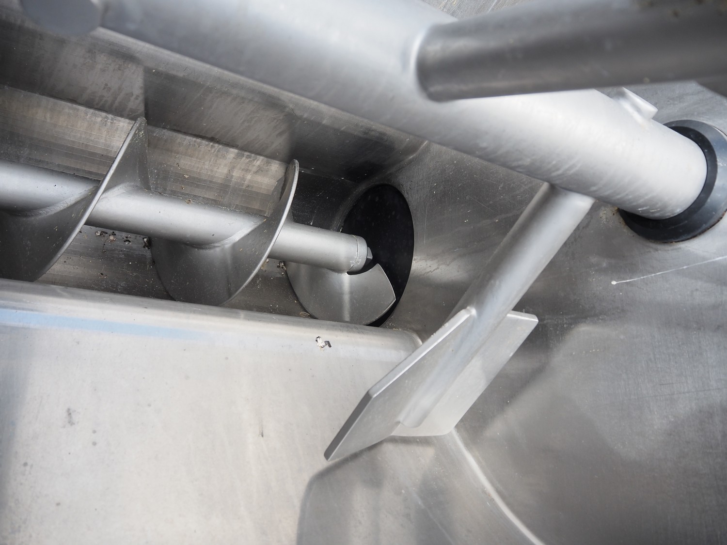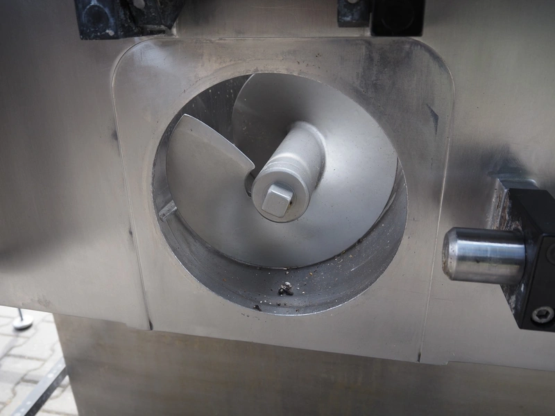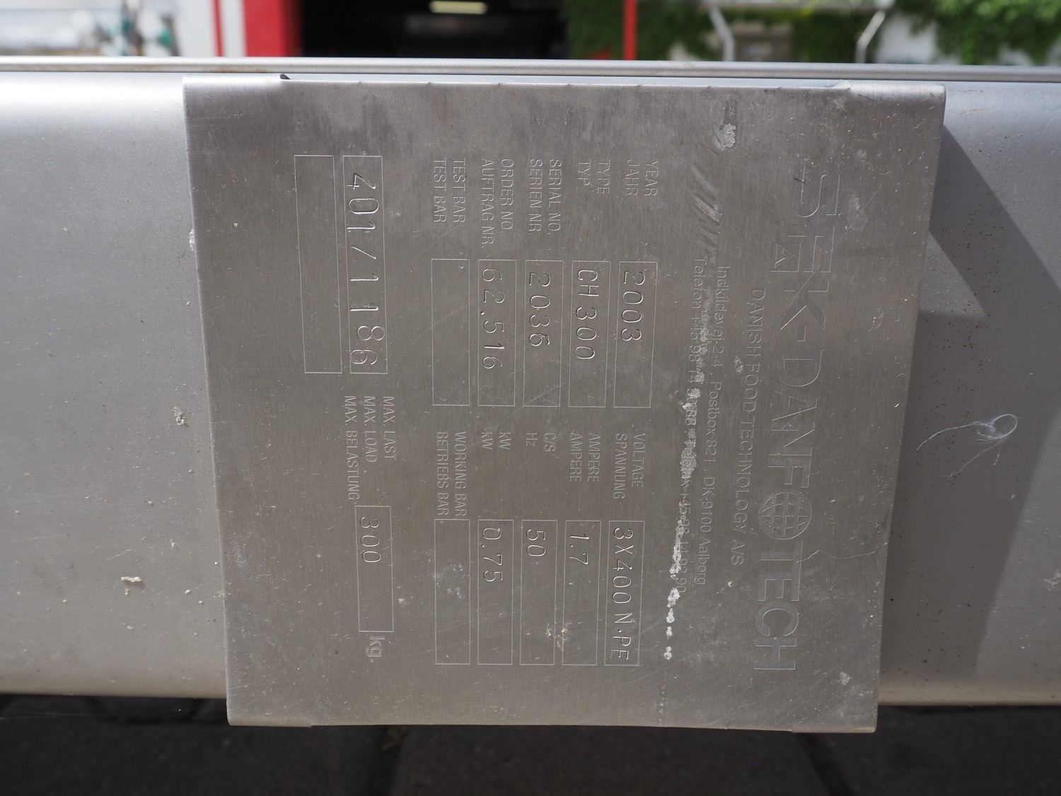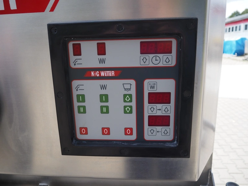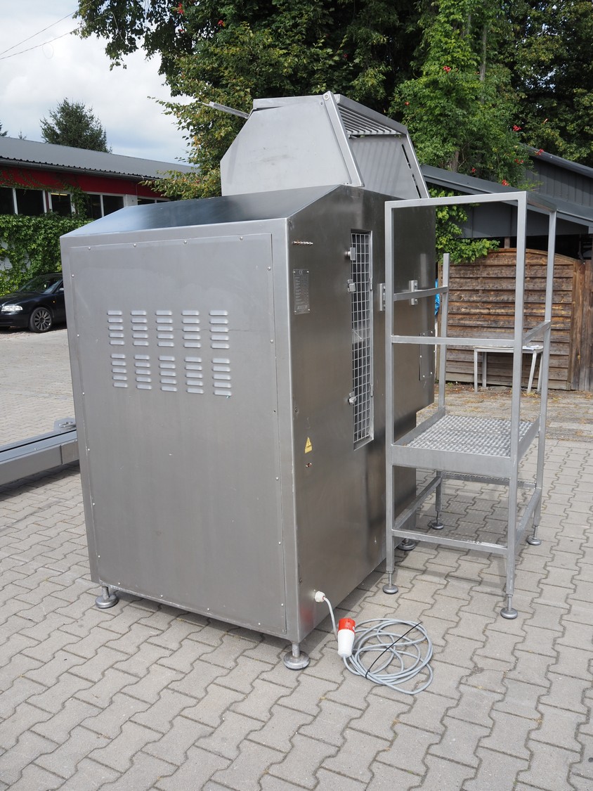 K+G Wetter paddle mixer, type: M 500, machine number: 441/1009, year of construction: 2004, 400 V, 50 Hz, 12 A, 6 kW, volume: 530 liter, capacity: 350 kg, weight: 1400 kg, dimensions: 2130 mm x 1430 mm x 2260 mm. Including SFK-Danfotech lifter for 200 liter meat bins, type: CH300, serial number: 2036, year of construction: 2003, 400 V, 3 Ph, 50 Hz, 1.7 A, 0.75 kW, lifting height: 2140 mm, total dimensions lift: 1150 mm x 1040 mm x 2900 mm and s/s platform, dimensions platform: 860 mm x 610 mm x 1770 mm.