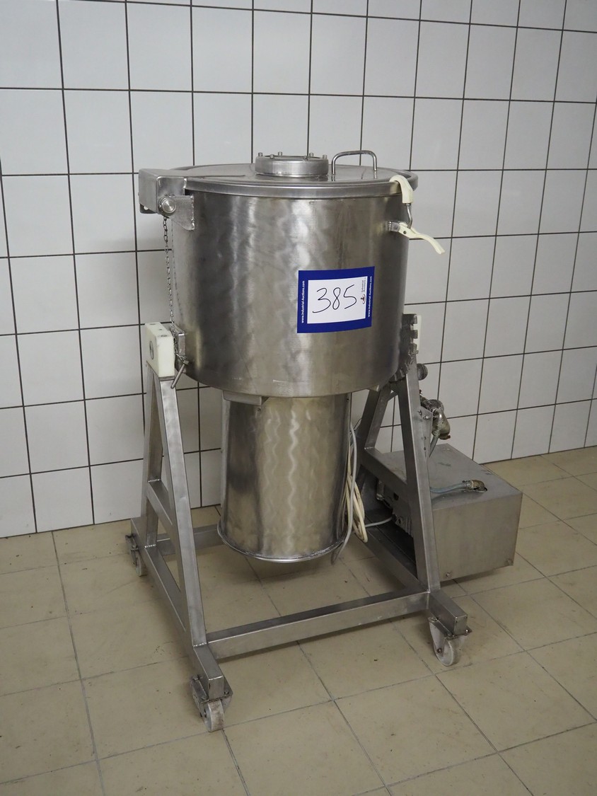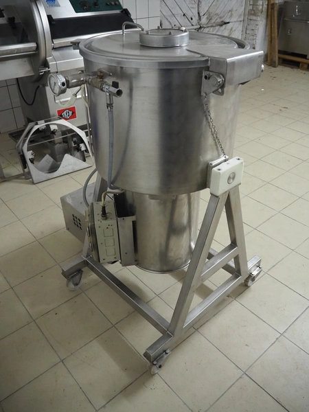 Röschermatic mobile tiltable vacuum mixer, volume: 150 liter, dimensions: 1100 mm x 900 mm x 1330 mm.