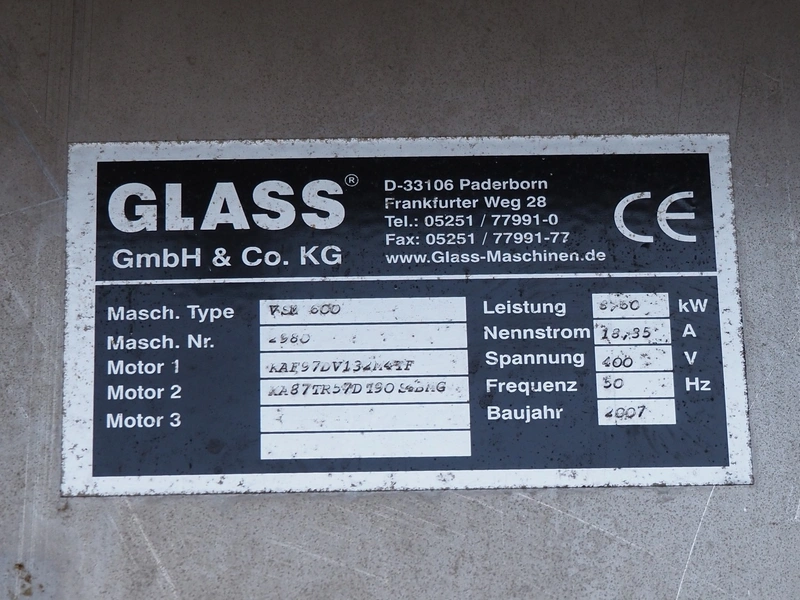 Glass GmbH & Co. KG vacuum mixer, type: VSM 600, machine number: 2980, year of construction: 2007, 400 V, 50 Hz, 18.35 A, 8.50 kW, volume: 600 litres, dimensions: 2600 mm x 1500 mm x 1770 mm. Incomplete.