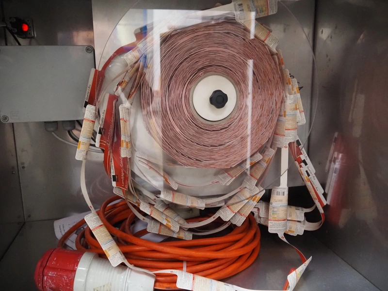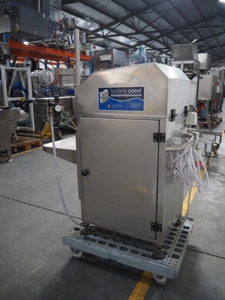 Cocci Luciano s.r.l. bag closing machine with Bizerba labeller, model: Manual Bag Closer, serial number: 591/11, year of construction: 2011, type labeller: GT-6M, number: 10749099, dimensions: 1050 mm x 750 mm x 1500 mm.