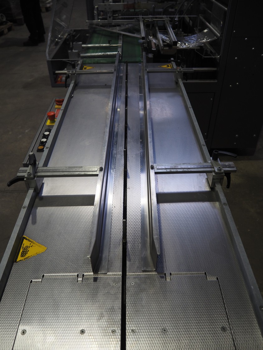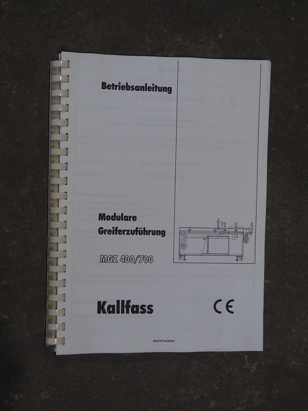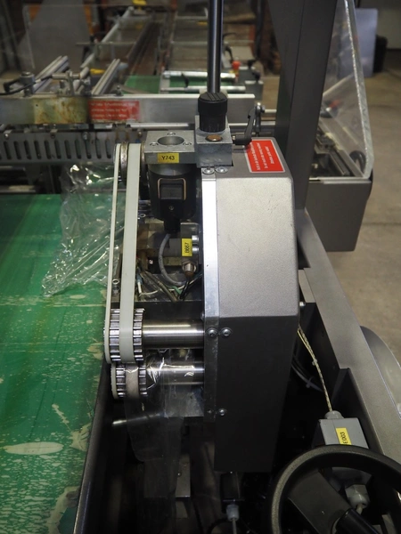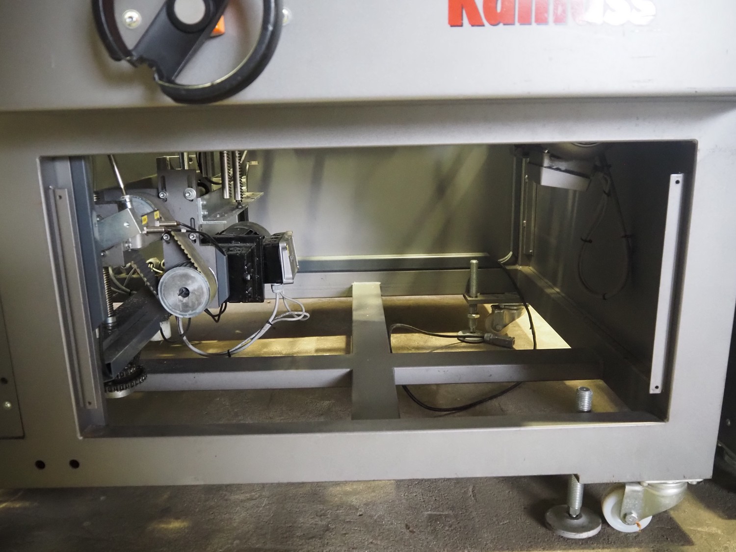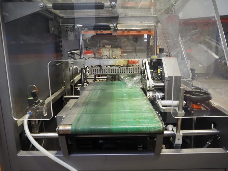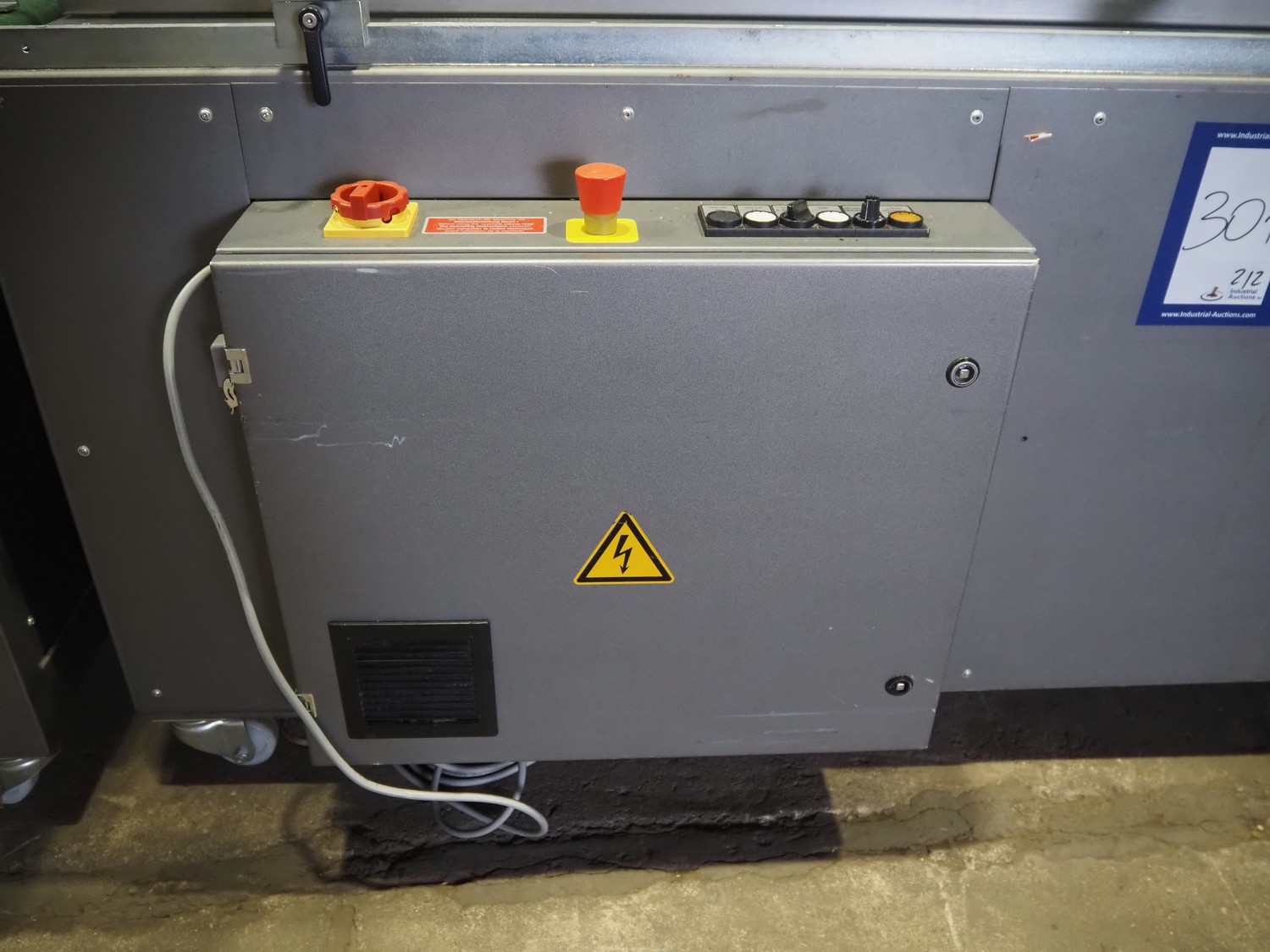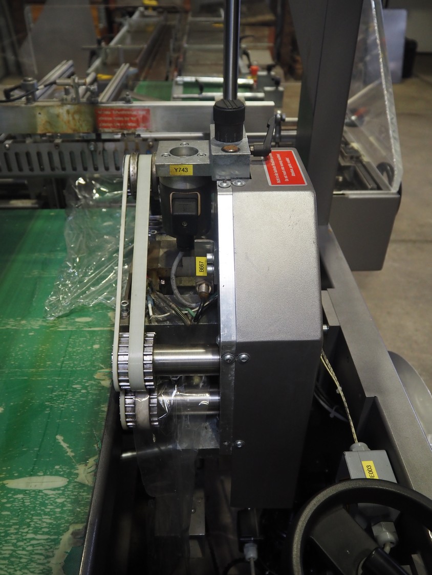 Kallfass Verpackungsmaschinen automatic side sealer, type: UNIVERSA 400 NT, machine number: M 07.01.123, year of construction: 2001, 400 V, 3 Ph, 50/60 Hz, 8.7 A, plastic belt, belt width: 400 mm, film width: 320 mm, seal length: 450 mm, total dimensions: 4100 mm x 1700 mm x 1800 mm.