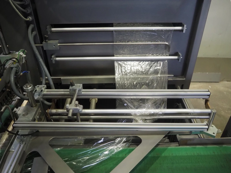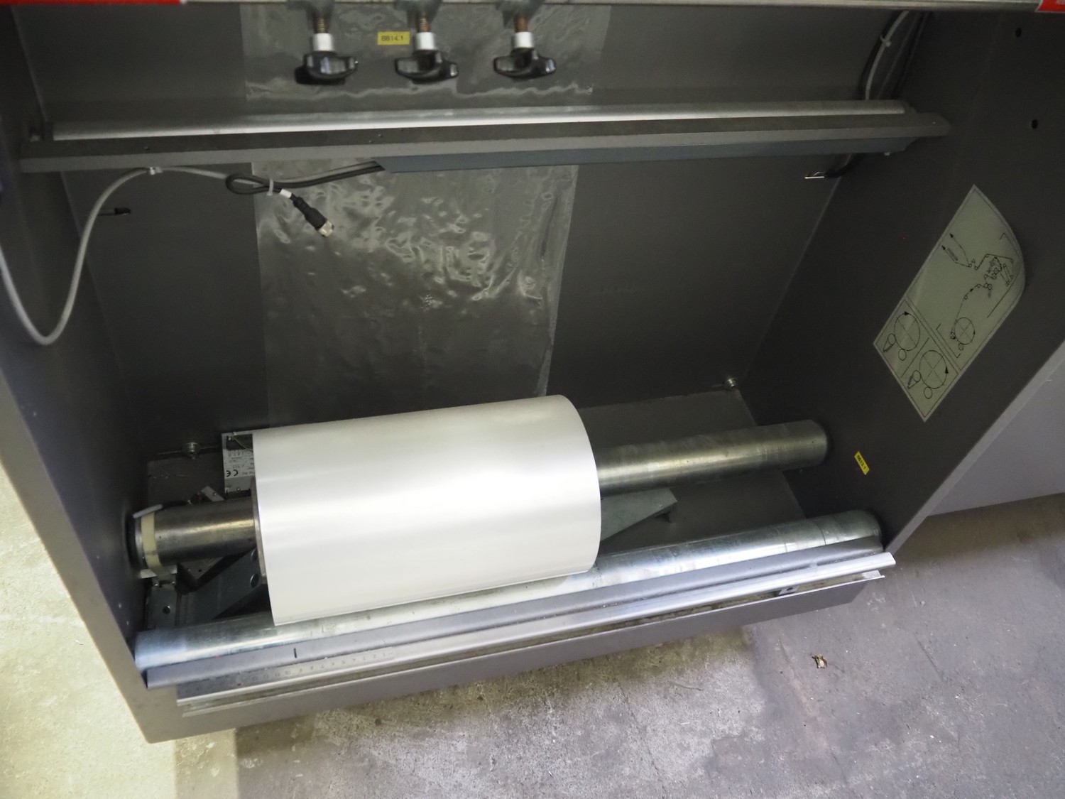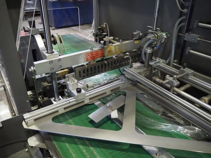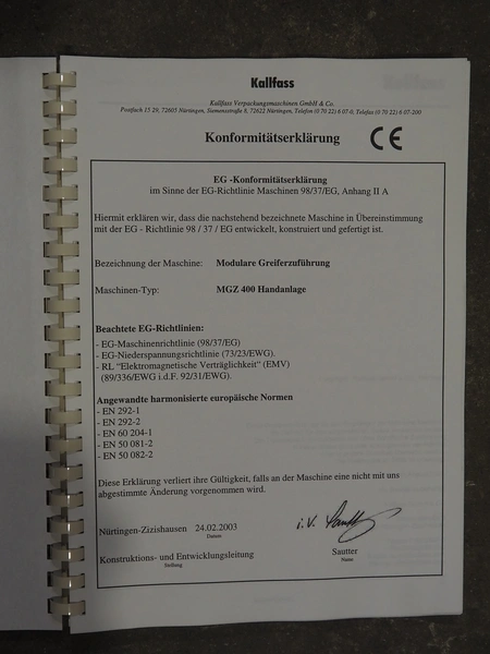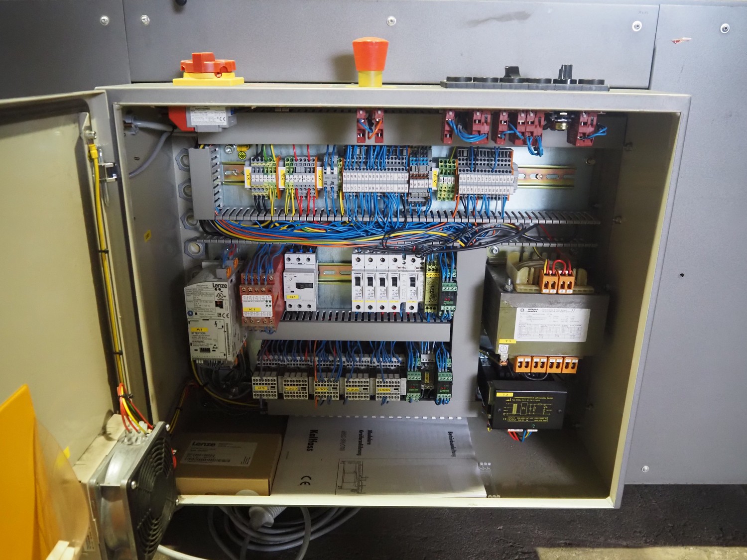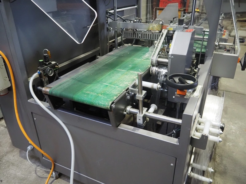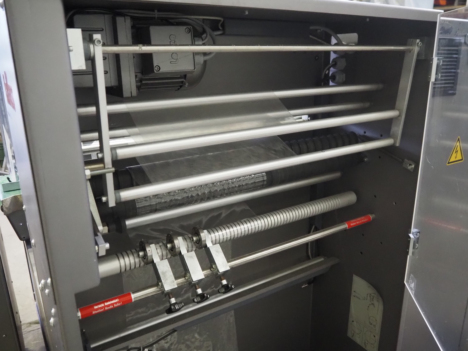 Kallfass Verpackungsmaschinen automatic side sealer, type: UNIVERSA 400 NT, machine number: M 07.01.123, year of construction: 2001, 400 V, 3 Ph, 50/60 Hz, 8.7 A, plastic belt, belt width: 400 mm, film width: 320 mm, seal length: 450 mm, total dimensions: 4100 mm x 1700 mm x 1800 mm.