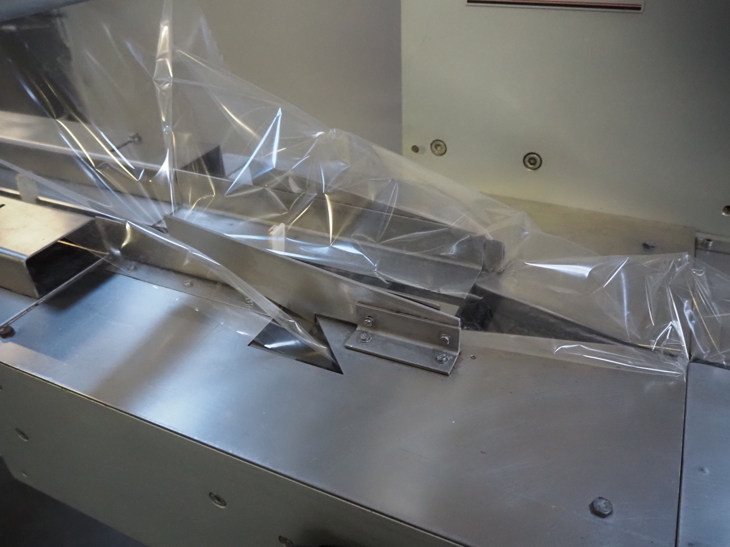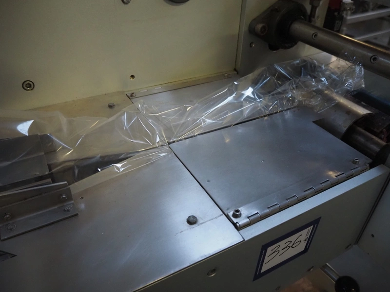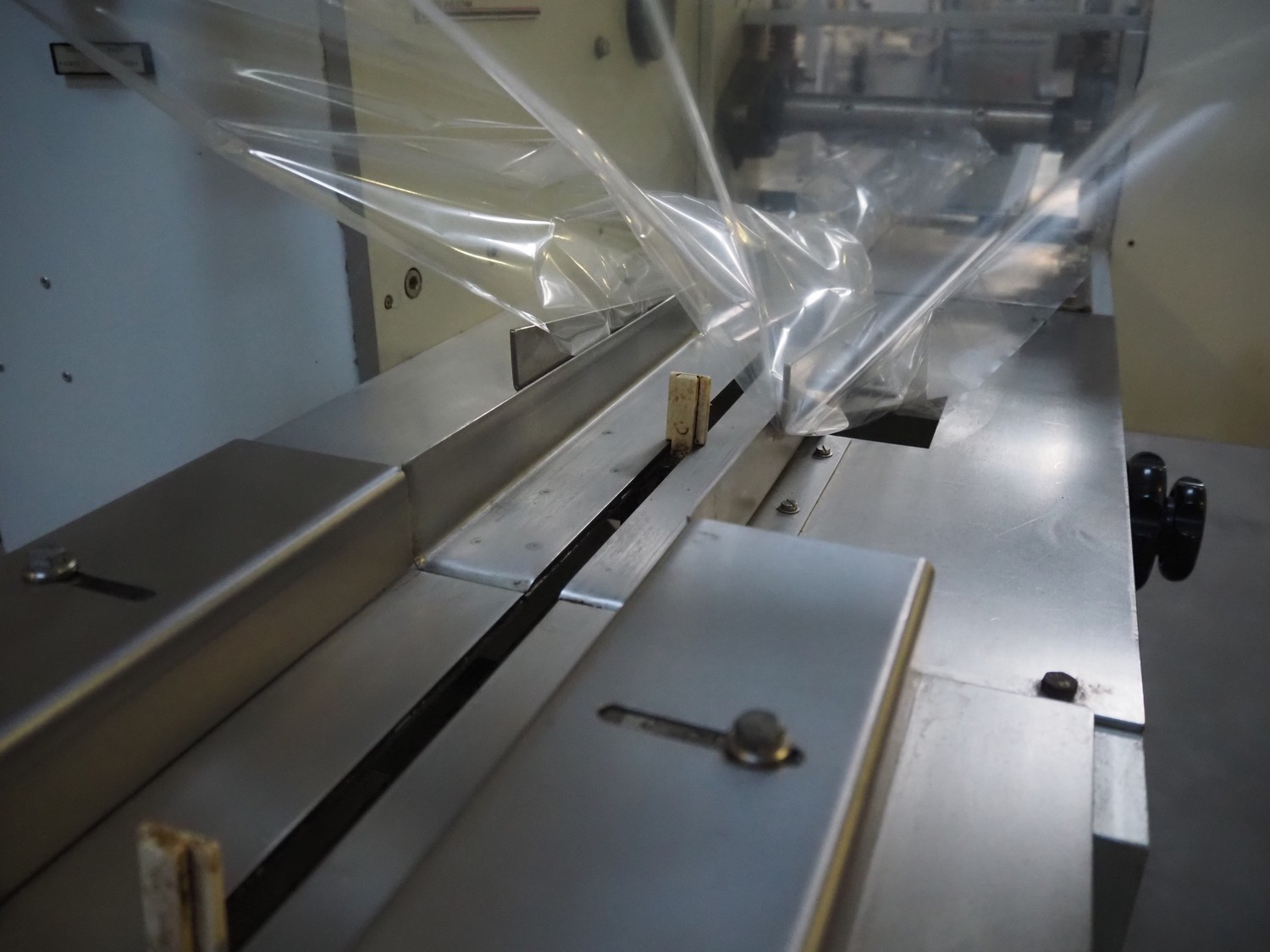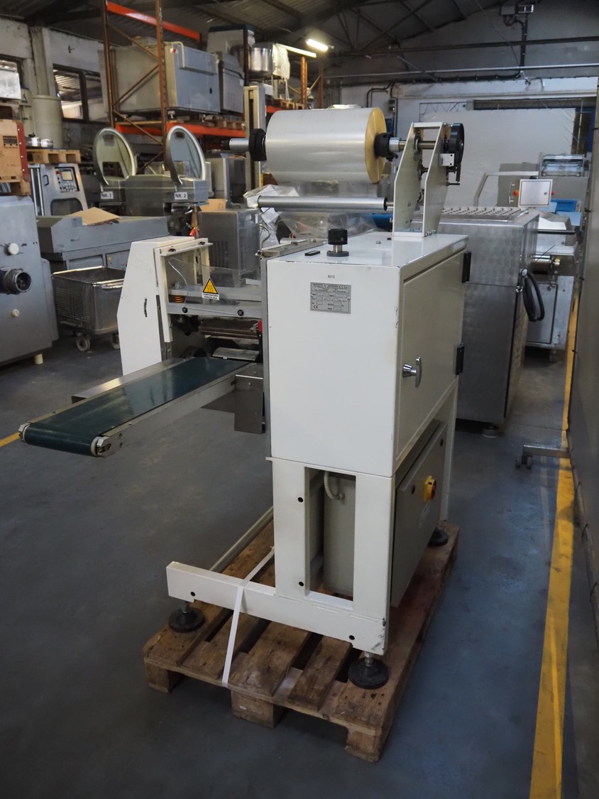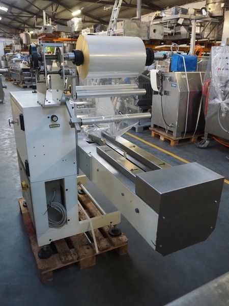 Brevetti E. Gasparin & C snc flowpacker, model: COR.1, serial number: 503.29, year of construction: 2000, 220 V, 3 Ph, 50 Hz, 3 A, 0.6 kW, weight: 350 kg, film width: 400 mm, seal length: 200 mm, plastic belt, belt width: 180 mm, total dimensions: 2500 mm x 1050 mm x 1660 mm.