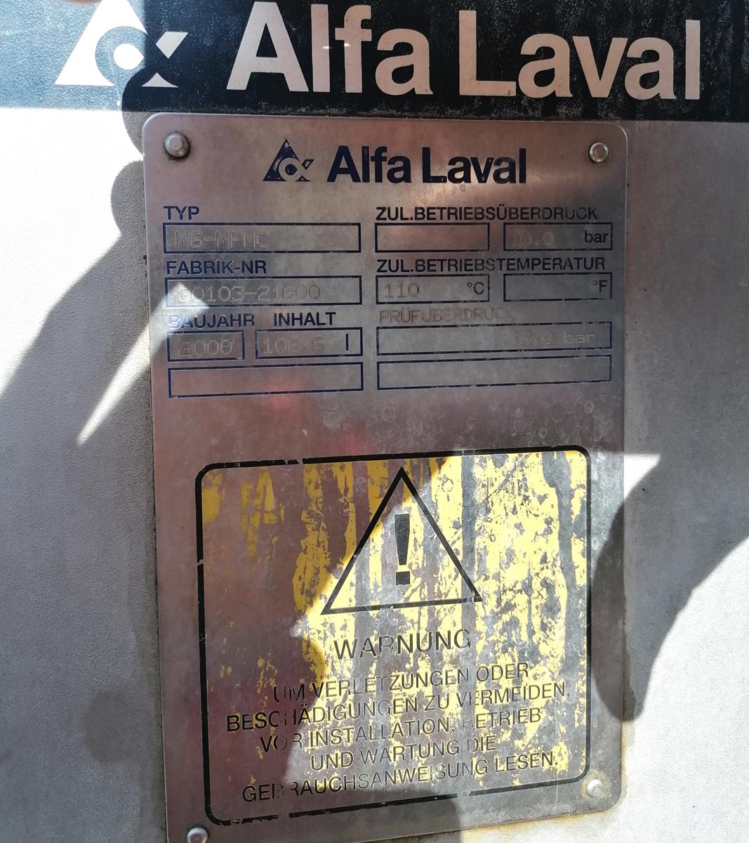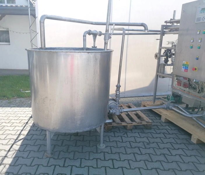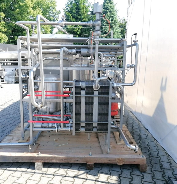 Milking cream pasteurization unit, type: PS 2, serial number: 1105, year of construction: 2005, capacity: 2000 liter per hour, with Alfa Laval heat exchanger, type: M6-MFMC, number: 30103-2160, year of construction: 2000, Alfa Laval circulation pump, pasteurization unit dimensions: 1800 mm x 2300 mm x 2000 mm, including s/s tank, inside dimensions: Ø 1000 mm x 1000 mm, tank dimensions: 1200 mm x 1200 mm x 1370 mm, including Sigma circulation pump, type: 65 RB-160.