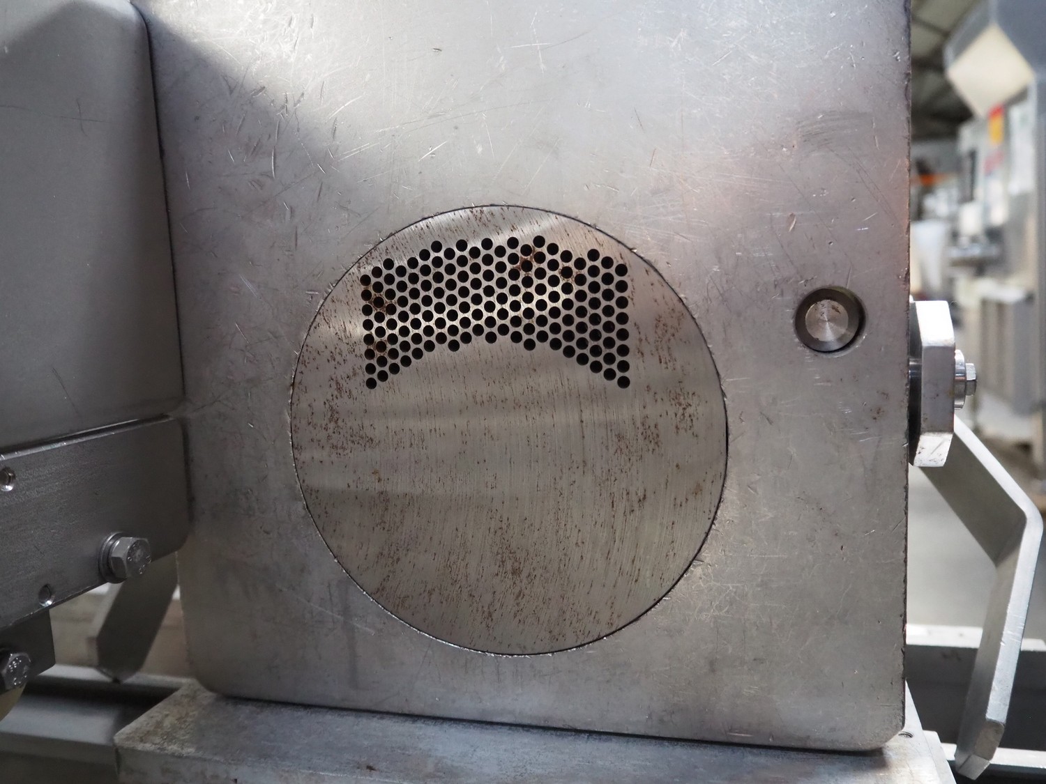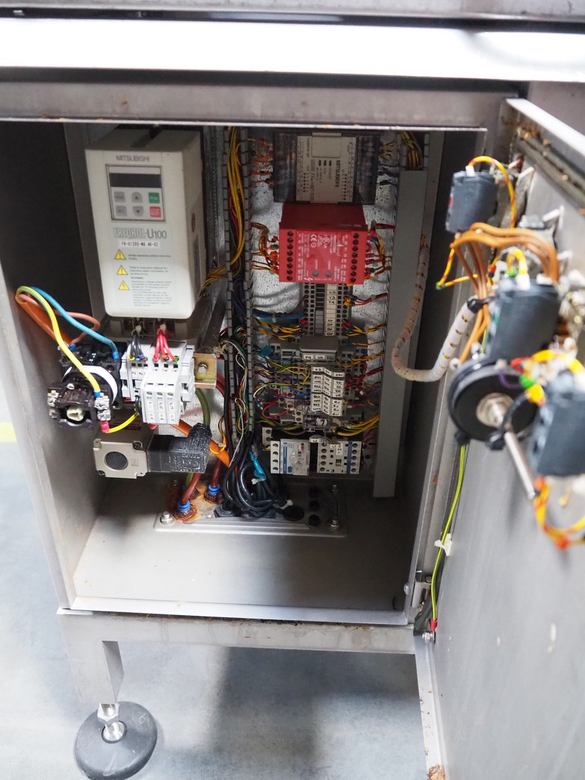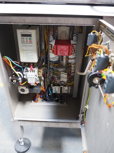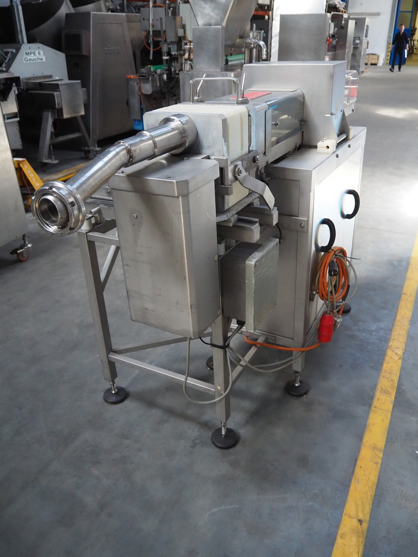 Handtmann/Ariana portioning machine for minced meat, consisting of:Handtmann grinder head for vacuum filling machine, model: GD 93-1, serial number: 77, year of construction: 06/99, 100 V, 50 Hz, 27 A, 1.5 kW, plate diameter: 148 mm.Ariana portion cutter with interleaver, serial number: 2950-3265, plastic belt, belt width: (2x) 160 mm, total dimensions: 2100 mm x 750 mm x 1260 mm.