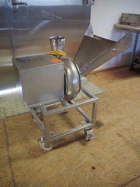 Mobile pump for dry products, dimensions: 650 mm x 800 mm x 900 mm.