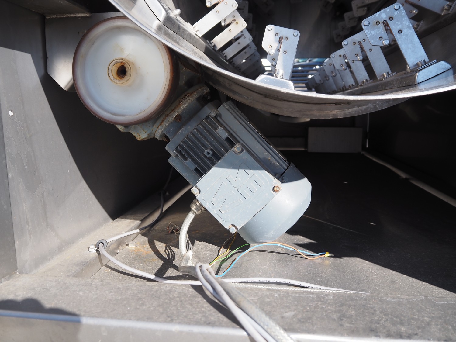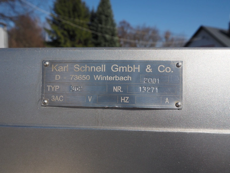 Karl Schnell GmbH & Co. Sausage cutter, type: 362, number: 13271, year of construction: 2001, diameter drum: 700 mm, dimensions: 3900 mm x 1000 mm x 1750 mm.