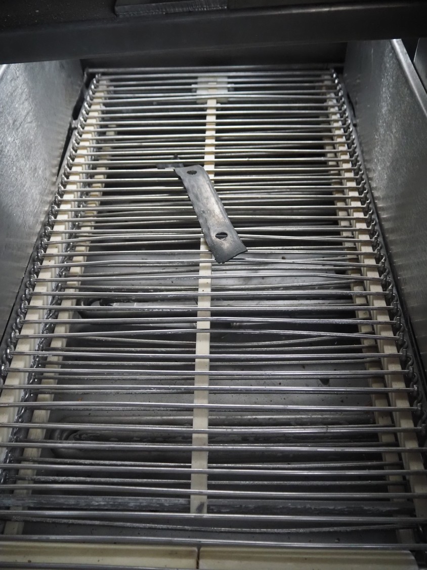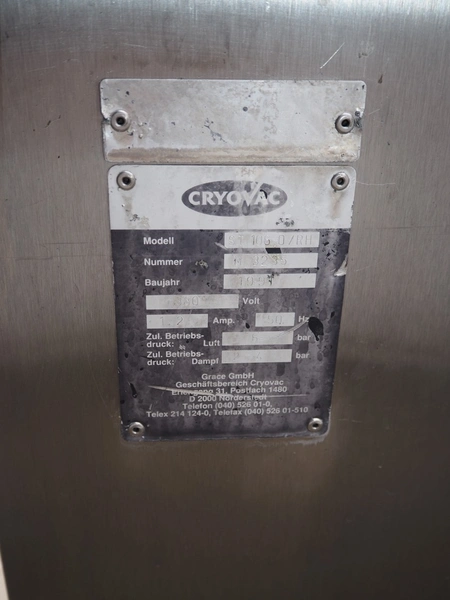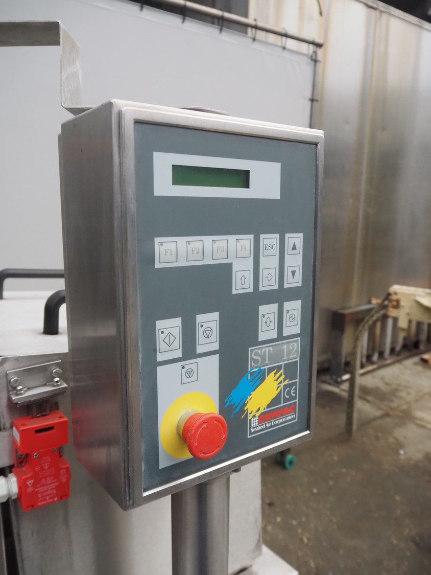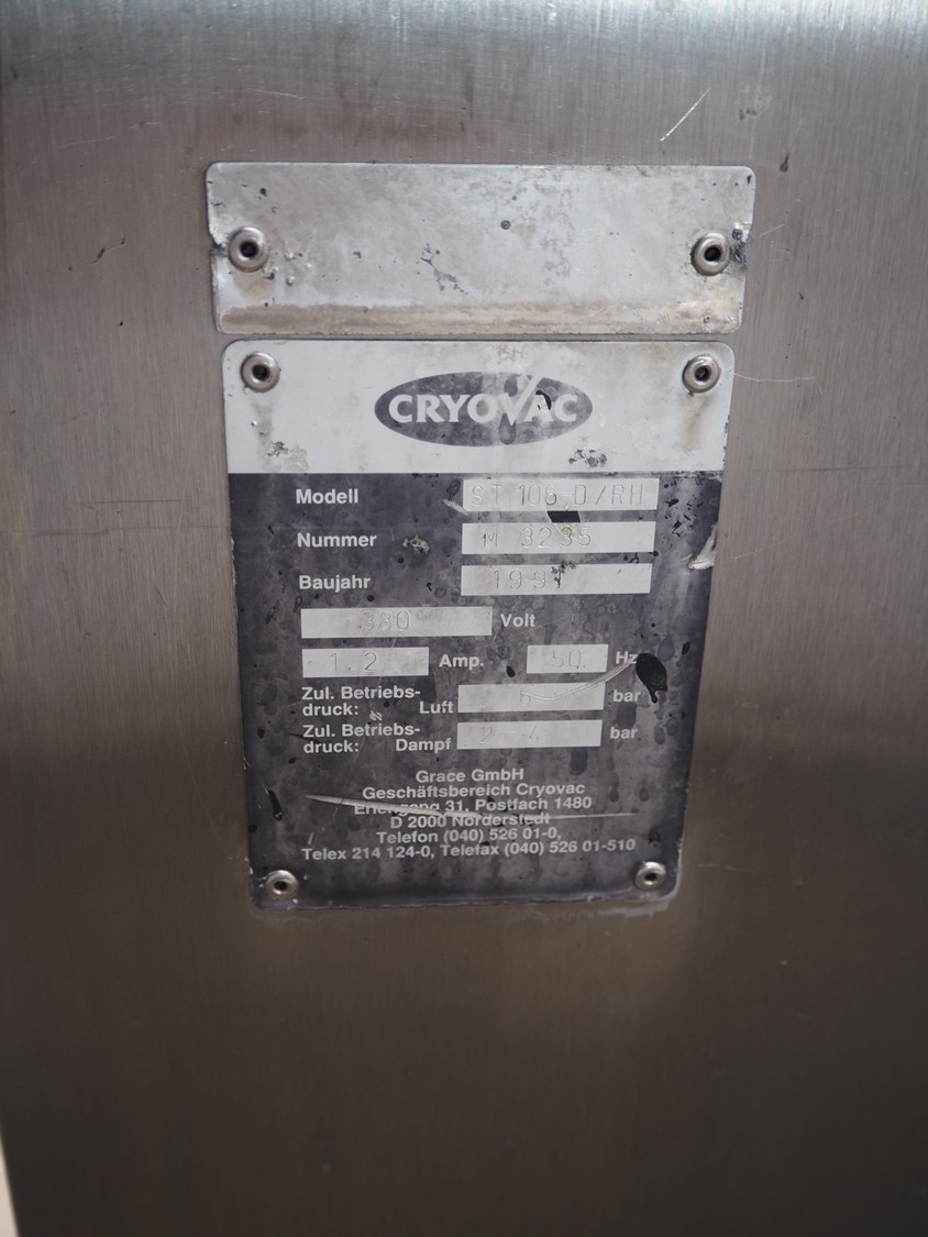 Cryovac shrink tunnel, model: ST 106-D/RH, number: M3235, year of construction: 1991, 380 V, 50 Hz, 2 A, s/s belt, belt width: 440 mm, clearance: 475 mm x 250 mm, total dimensions: 1100 mm x 920 mm