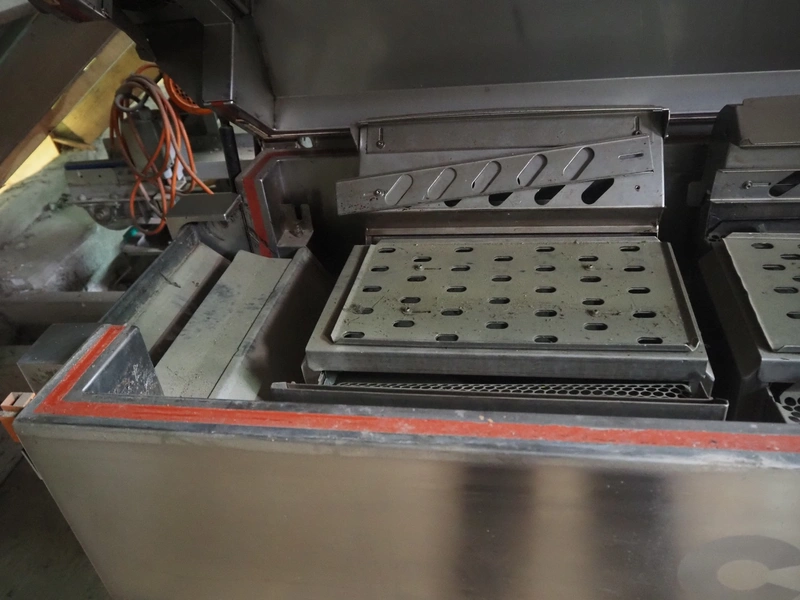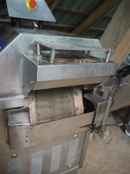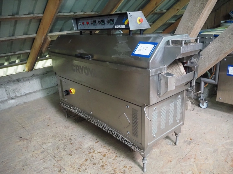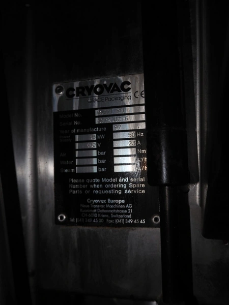 Cryovac shrink tunnel, model: CJ 51T RH, serial number: A91200216, year of construction: 1997, 400 V, 50 Hz, 23 A, 15 kW, clearance: 260 mm x 120 mm, total dimensions: 2100 mm x 900 mm x 1400 mm.