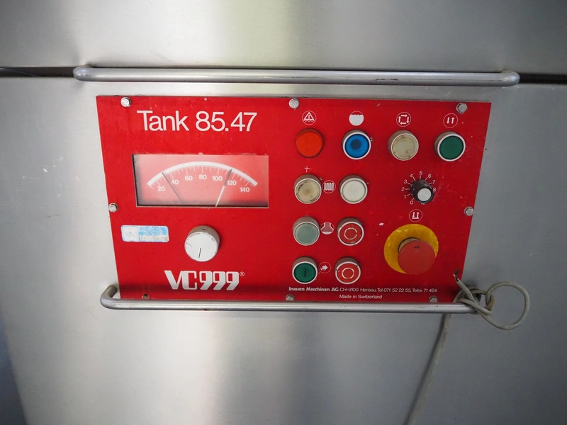 Inauen Maschinen AG dip tank, type: VC999/Tank 85.47 D, machine number: 95T85180, 380 V, 3 Ph, 50 Hz, 6 A, 0.6 kW, inside dimensions: 980 mm x 460 mm x 300 mm, s/s rollers, roller width: 470 mm, total dimensions: 1320 mm x 1000 mm x 1330 mm.