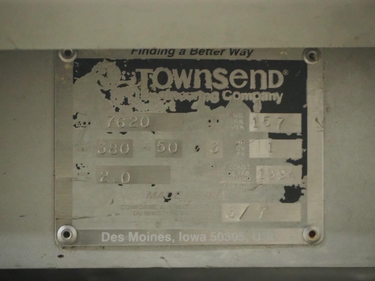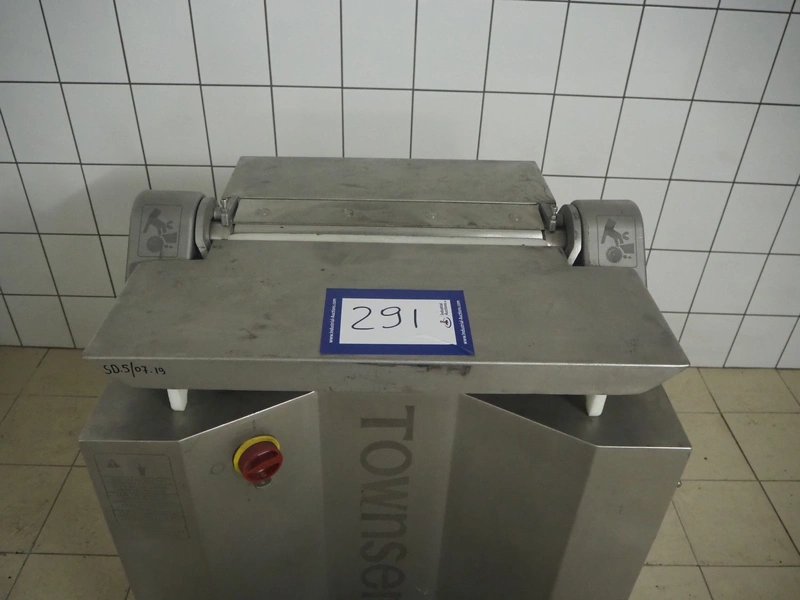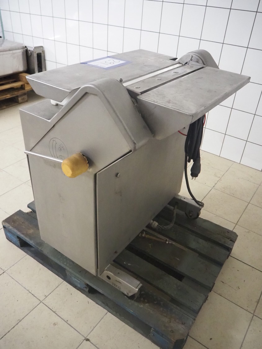 Townsend mobile skinning machine, model: 7620, serial number: 157, year of construction: 1994, 380 V, 3 Ph, 50 Hz, 2.0 A, working width: 510 mm, total dimensions: 900 mm x 550 mm x 980 mm.