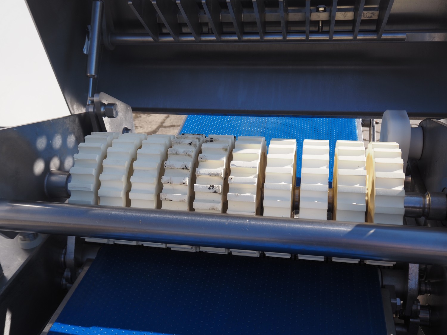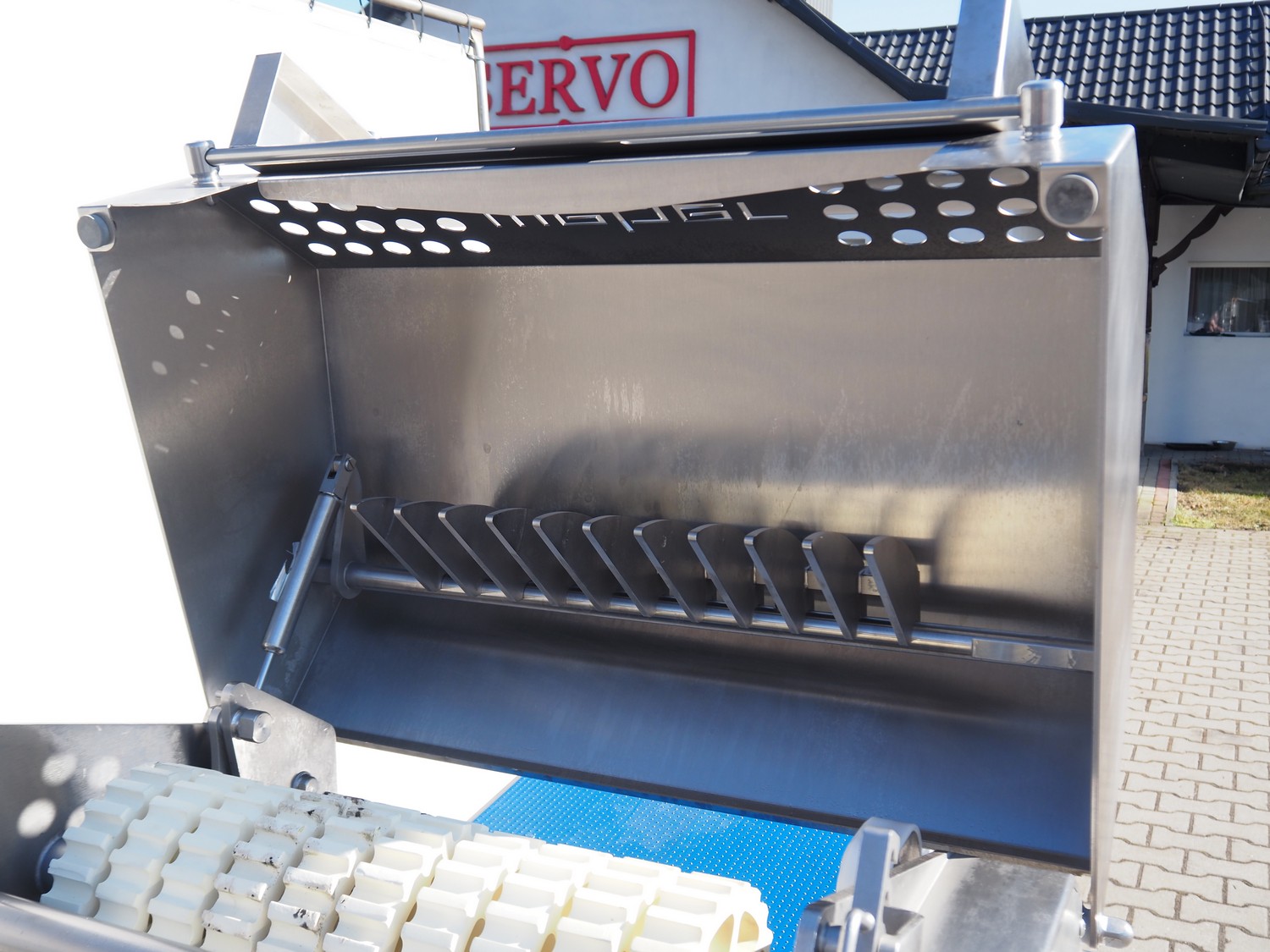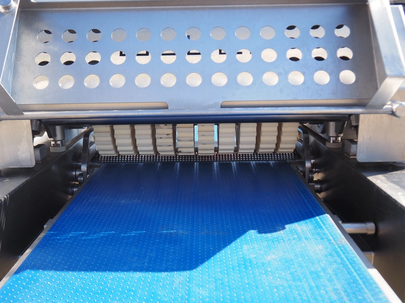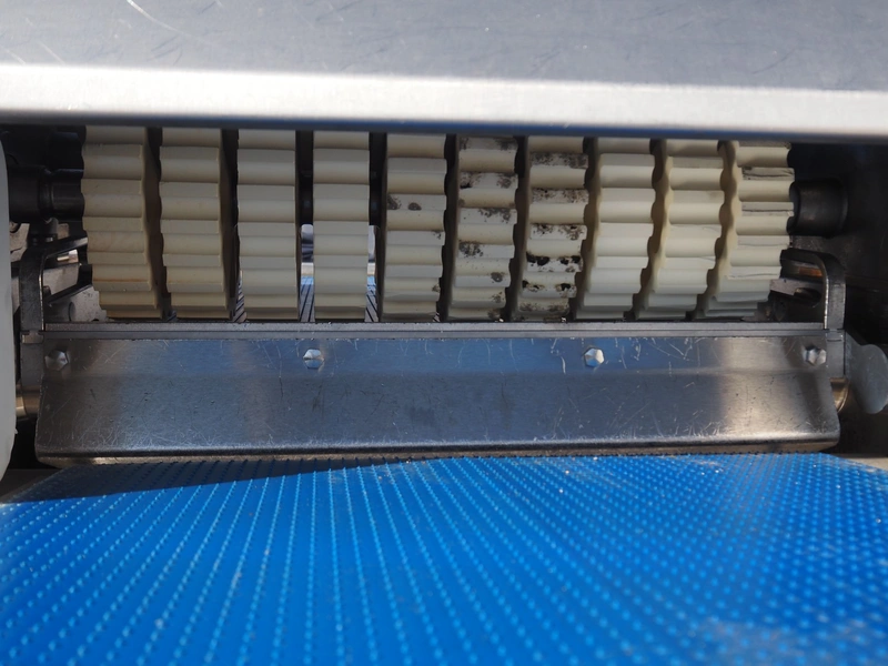 Weber mobile skinning and derinding machine, type: ASB 560, number: 401, year of construction: 08/2014, 400 V, 50 Hz, 1.1 kW, weight: 400 kg, plastic belt, belt width: 500 mm, working width: 560 mm, total dimensions: 2200 mm x 1100 mm x 1300 mm.