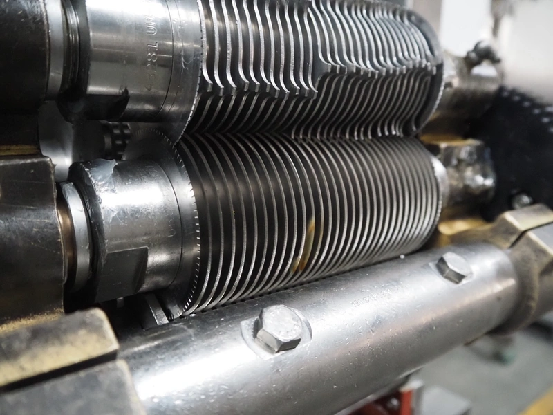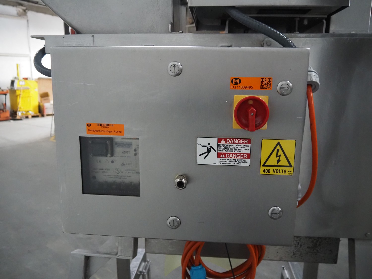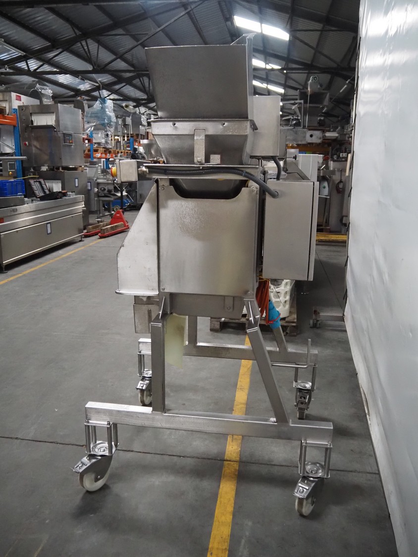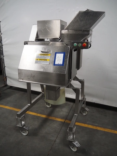 Urschel Laboratories Inc. mobile slicer, model: RA-D, serial number: 2529, year of construction: 2003, distance between knives: 5 mm, total dimensions: 1150 mm x 1000 mm x 2000 mm.