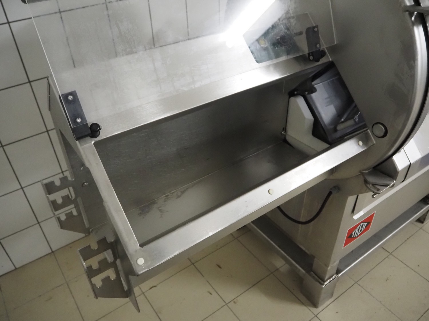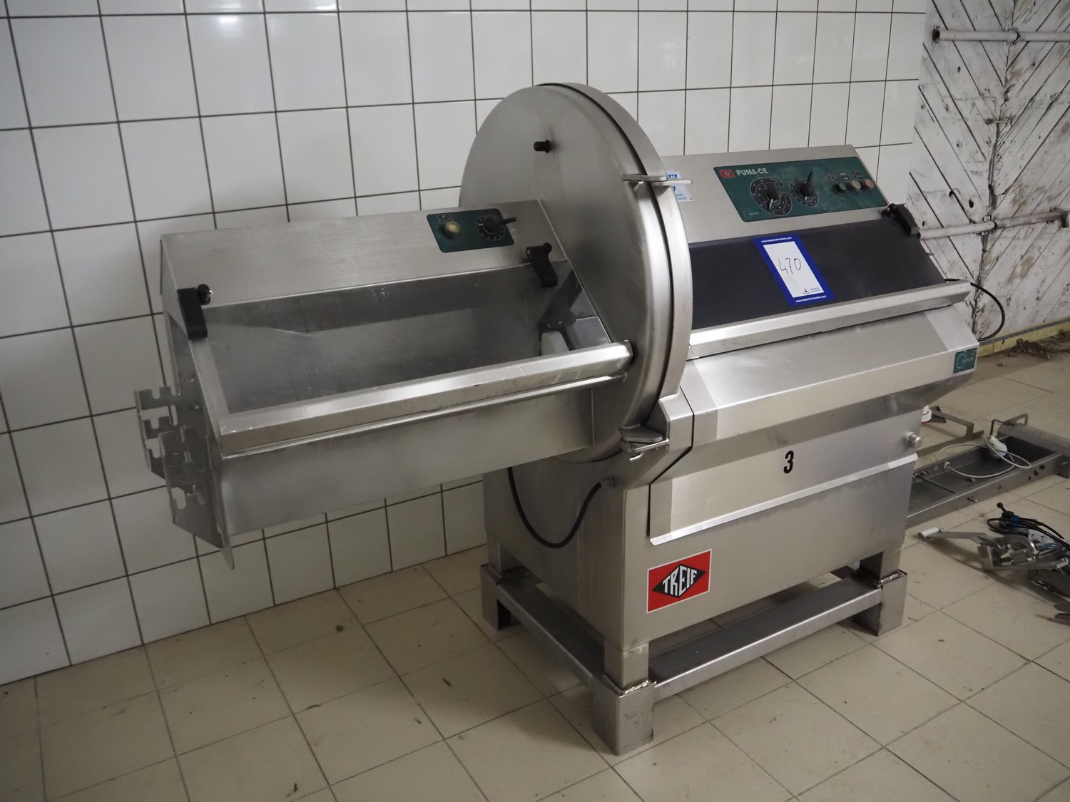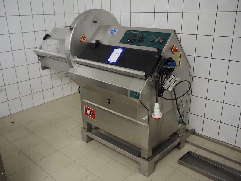 Treif slicer, type: 1923, machine number: 192303.61395.0127, year of construction: 1997, 400/230 V, 50 Hz, 7/16 A, 2.70 kW, dimensions: 1900 mm x 880 mm x 1580 mm. Including extra parts. Missing belt.