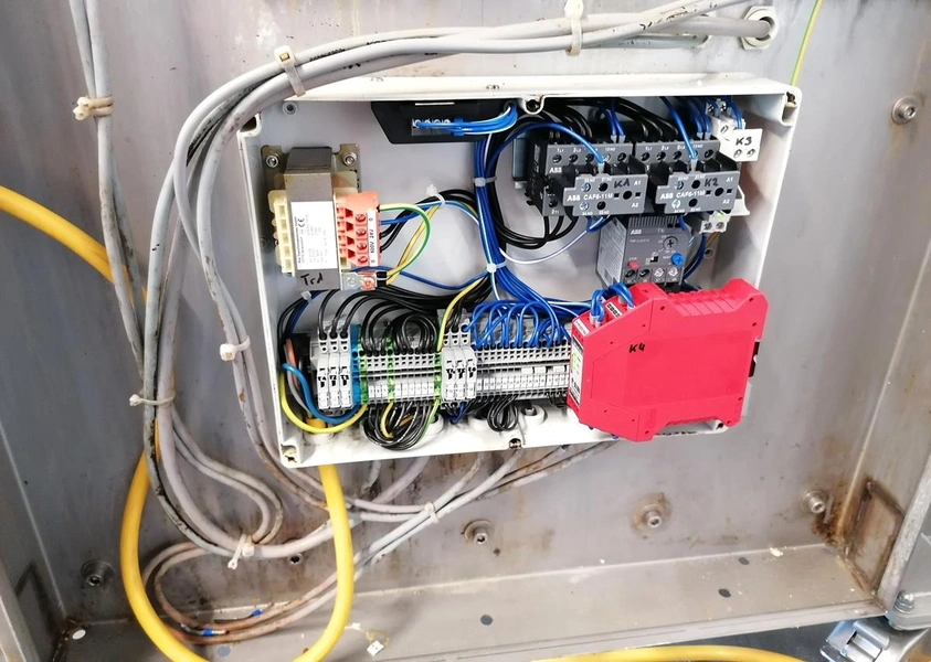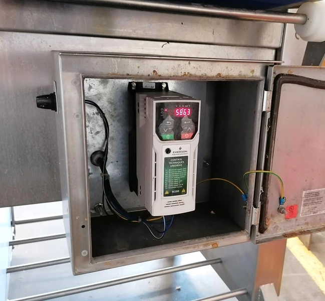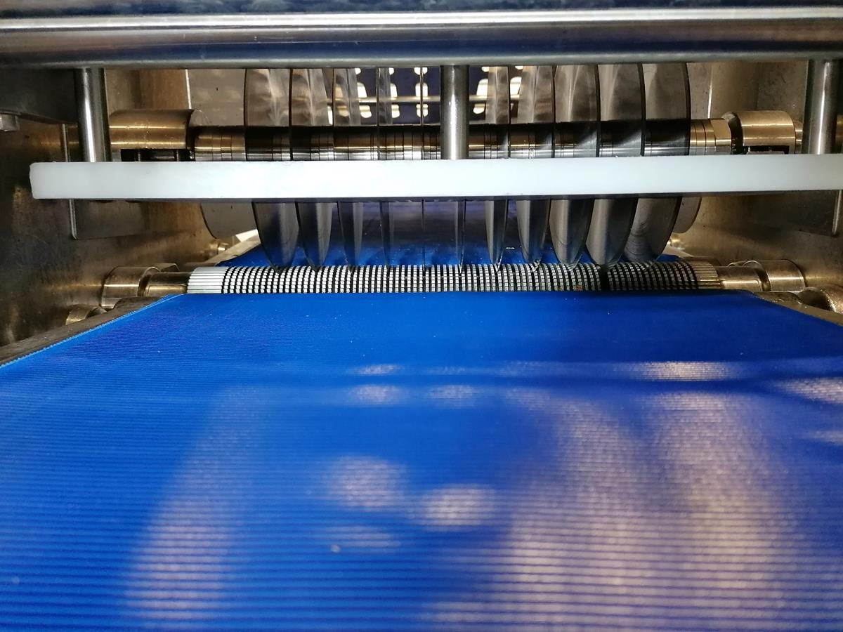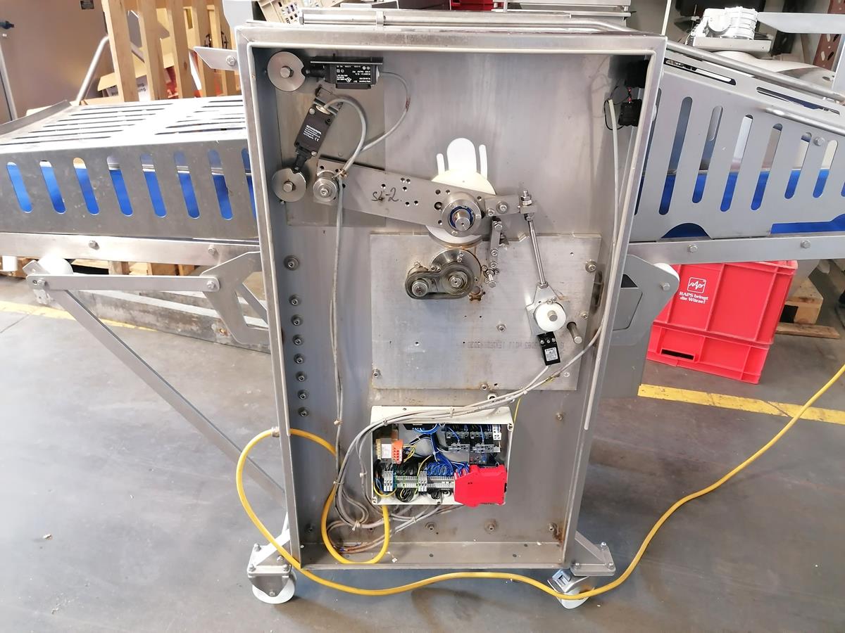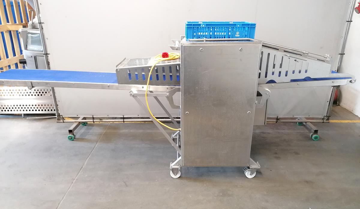 Nock mobile strip cutter, type: CB49515KK, machine number: 2259360, 400 V, 3 Ph, 50 Hz, 10 A, 1.1 kW, year of construction: 2018, plastic belt, belt width: 430 mm, 11 knives, distance between knives: 30 mm, total dimensions: 2200 mm x 750 mm x 1500 mm.