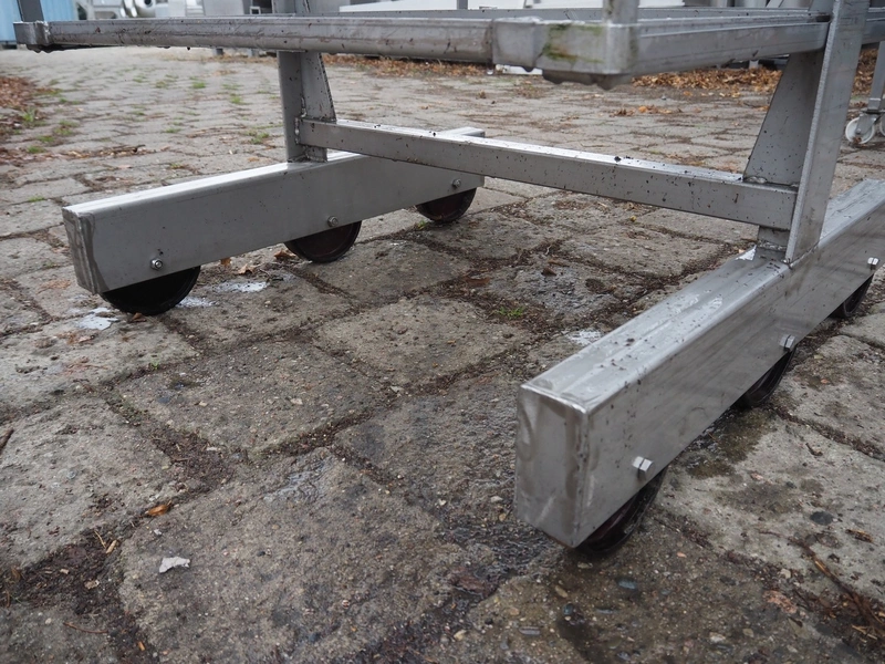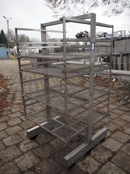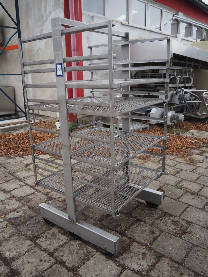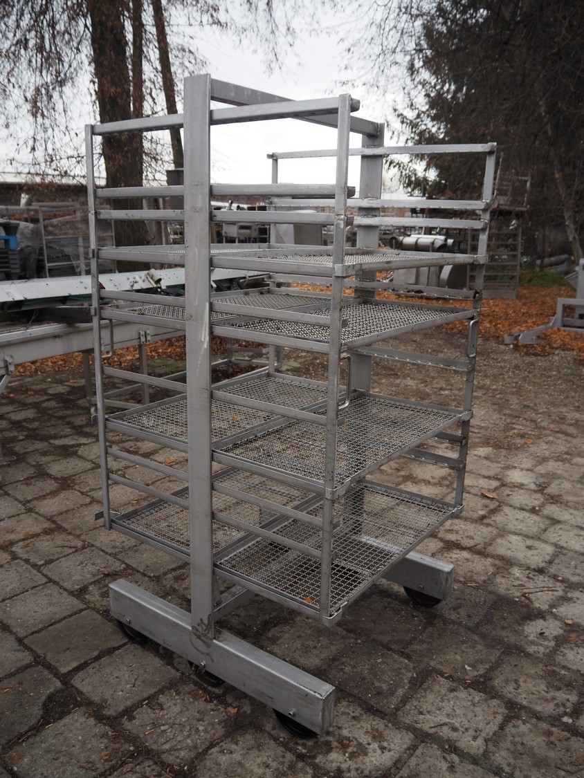 S/s smoke trolley, 10 floors, dimensions each floor: 1000 mm x 970 mm, total dimensions: 1010 mm x 1000 mm x 1980 mm.