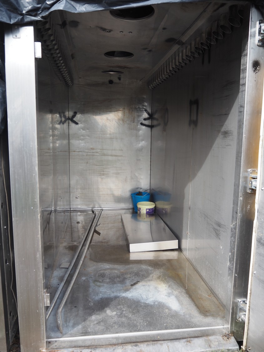 Eller smoke chamber for 3 trolleys, inside dimensions: 1180 mm x 3200 mm x 2060 mm, total dimensions: 1550 mm x 3600 mm x 2750 mm.